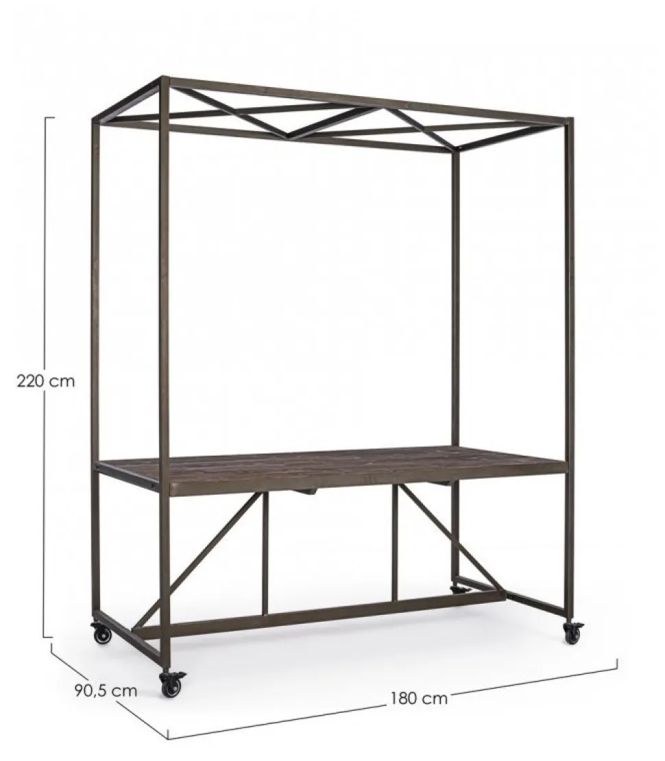 Tavolo Espositore C-Tetto 180X220H Acciaio Verniciato A Polvere Epossidica, Piano In Legno Di Abete E Mdf. Da Assemblare – Dimensioni In Cm. 180 (L.) 90.5 (P.) 220 H