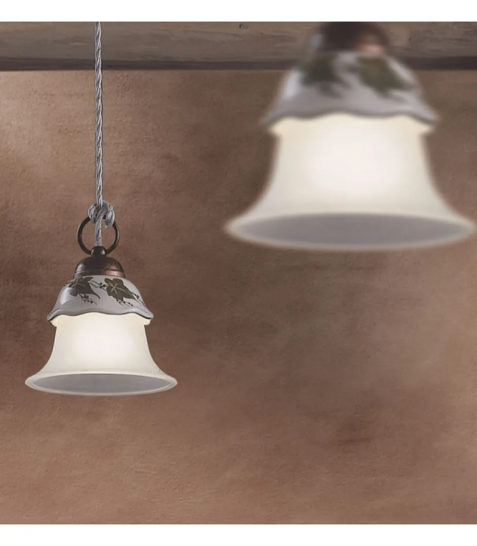 Lampada Sospesa Dundee, Prodotta In Italia Da Ferroluce, In Ceramica Con Colori Anticati Vintage.