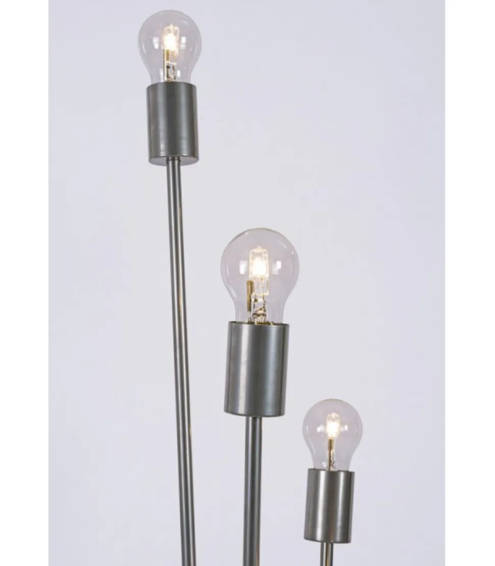 Piantana Fiaccola 5Luci Argento H155 Acciaio Verniciato A Polvere Epossidica. Lamp. (5X) E27 Max 60W, E27 11W Comp. Fluor Integr. Risp. En., E27 42W Alog. Risp. En. Lampadina/E Non Inclusa/E. Lunghezza Totale Cavo 1.75Mt. Distanza Tra Lampada E Interruttore: 75Cm. Da Assemblare – Dimensioni In Cm. 34X30X155 H
