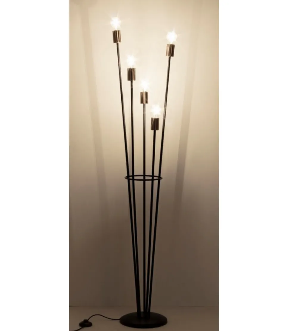 Piantana Fiaccola 5Luci Nero H155 Acciaio Verniciato A Polvere Epossidica. Lamp. (5X) E27 Max60W, E27 11W Comp. Fluor Integr. Risp. En., E27 42W Alog. Risp. En. Lampadine Non Incluse. Lunghezza Totale Cavo 1.75Mt. Distanza Tra Lampada E Interruttore: 75Cm. Da Assemblare – Dimensioni In Cm. 34X30X155 H