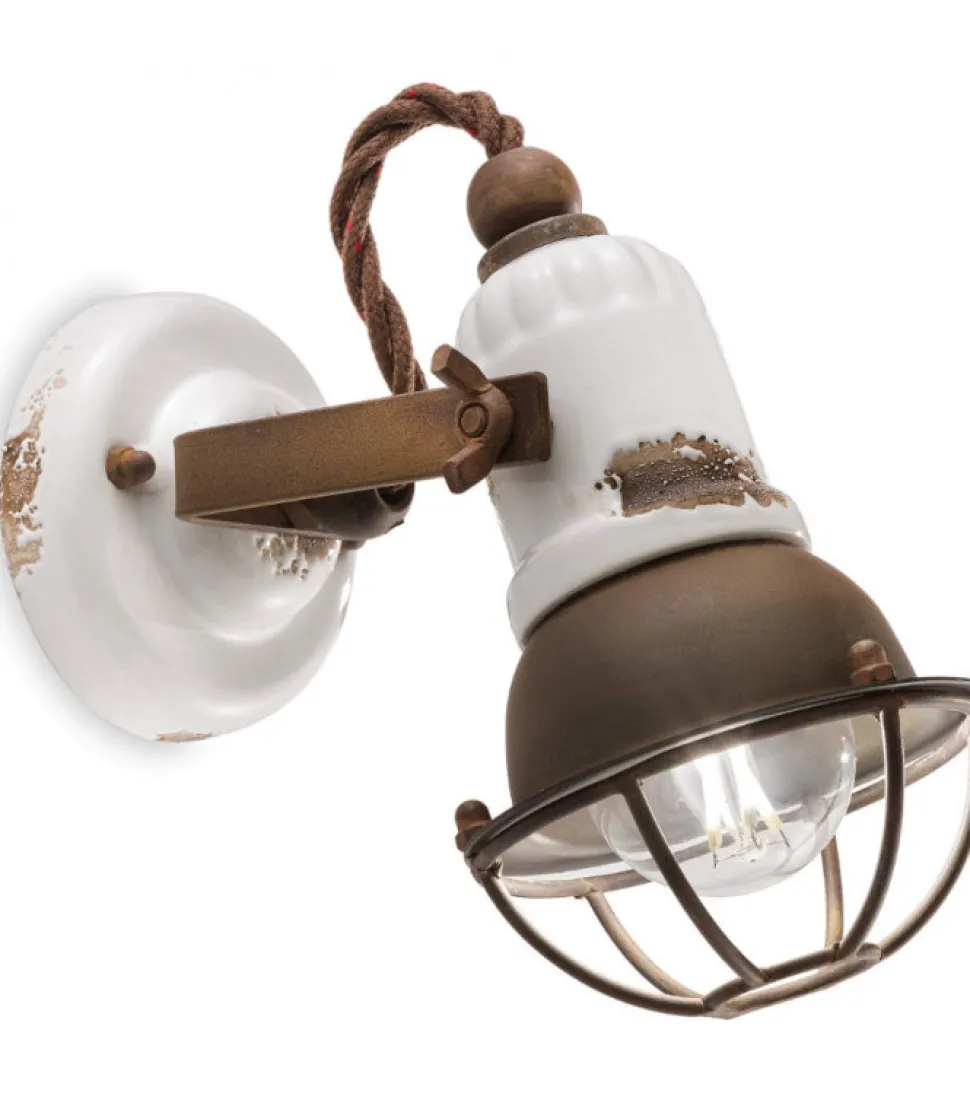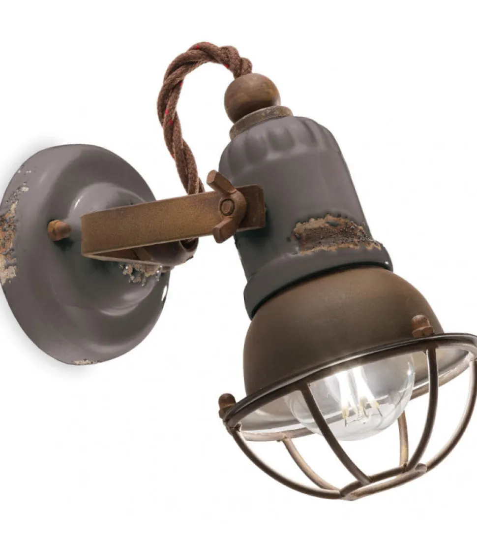Houston, Applique Di Ferroluce In Ceramica Finitura Anticata Vintage Con Dettagli In Metallo Corten.