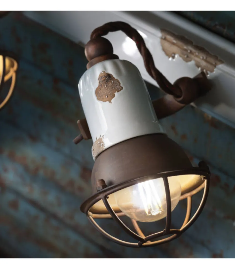 Elegante Design Con Gabbia: L’Applique Houston Presenta Un Design Unico Con Una Gabbia Metallica Che Avvolge Le Due Luci Interne, Conferendo Un Aspetto Vintage E Un Tocco Di Industrial Chic.