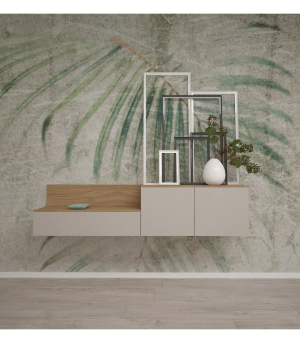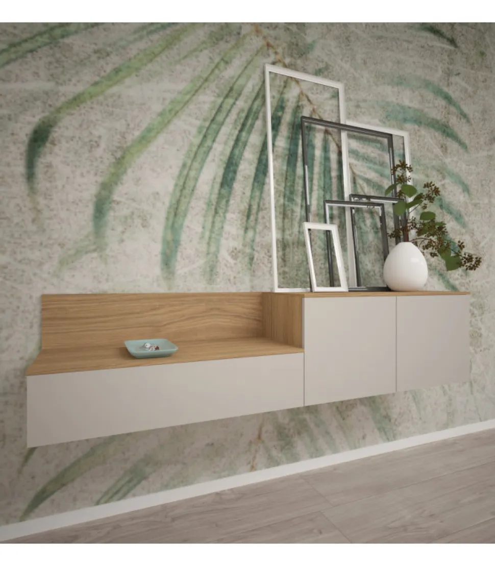 Madia Composta Da Un Elemento Sospeso Con Due Ante, Un Elemento Con Cassetto. Scegliendo Un Colore In Contrasto Rispetto La Madia, Si Crea Un Gioco Di Tonalita Che Dona Brio Alla Composizione.