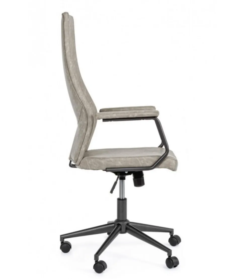 Poltr.Uff. Sch.Alto Jamie Grigio Ch. Base In Nylon O 30Cm. Ruote In Nylon. Imbottitura In Schiuma Poliuretanica Densita’ 26 Kg/M3. Rivestimento In Ecopelle (Pu). Braccioli In Plastica (Pp). Altezza Regolabile. Da Assemblare. – Dimensioni In Cm. 67 (L.) 58 (P.) 109/119 ( H.) 45/55 ( H1)