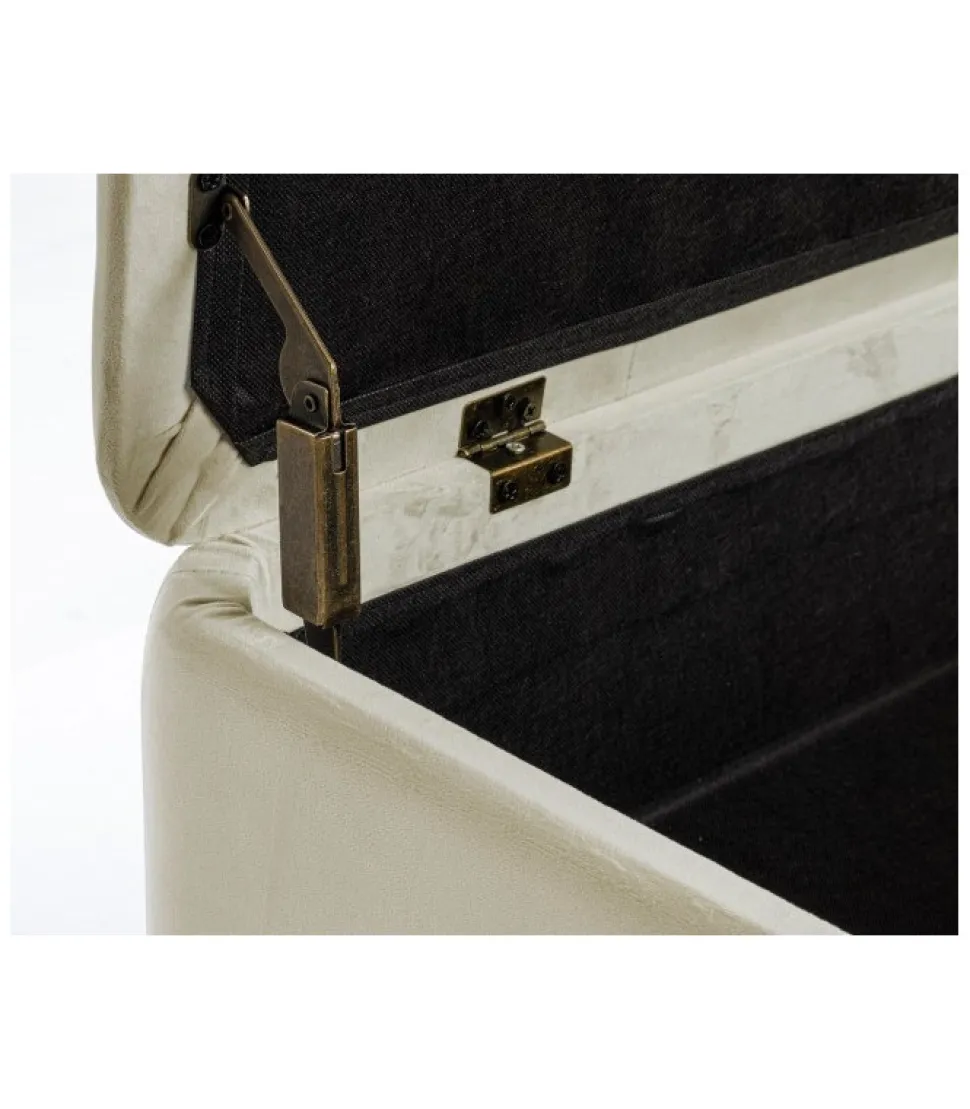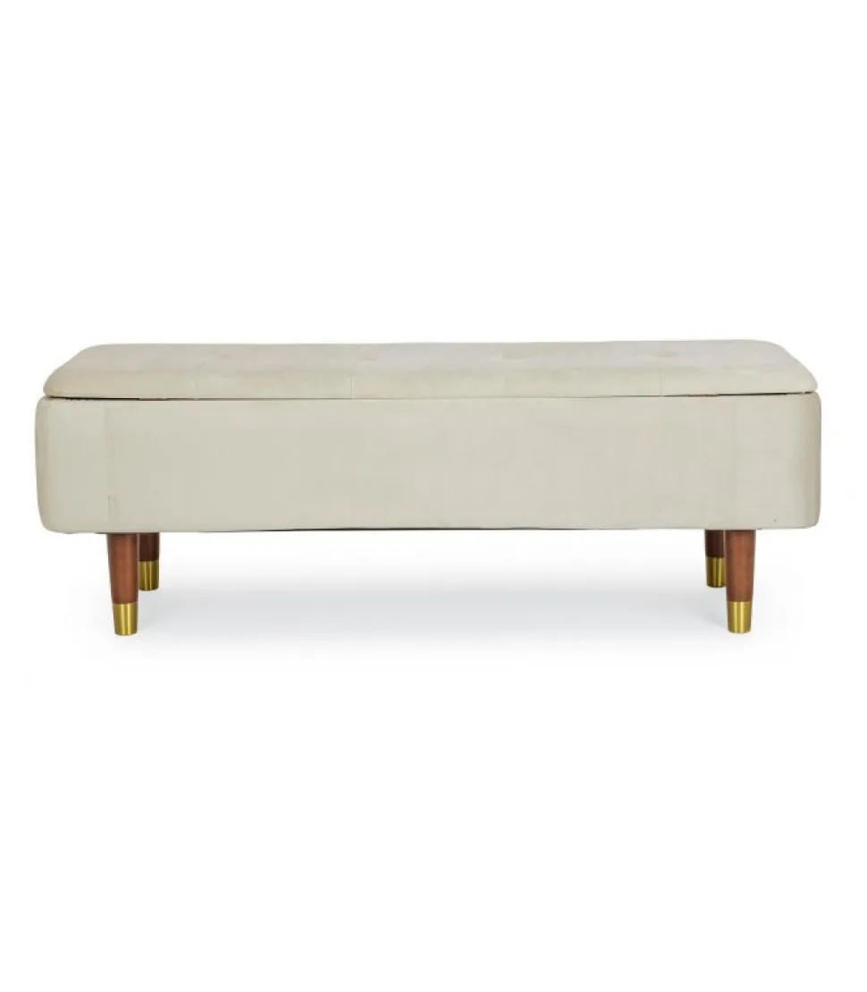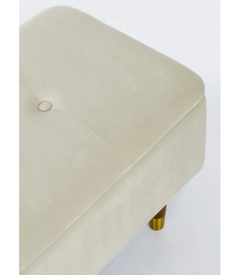 Panca 2P Contenitore Kira Nat Struttura In Mdf E Compensato. Gambe In Rubber Wood E Finali In Acciaio Vernicato Color Oro. Rivestimento In Poliestere Effetto Velluto. Gambe Da Assemblare. – Dimensioni In Cm. 120 (L.) 42 (P.) 42 H