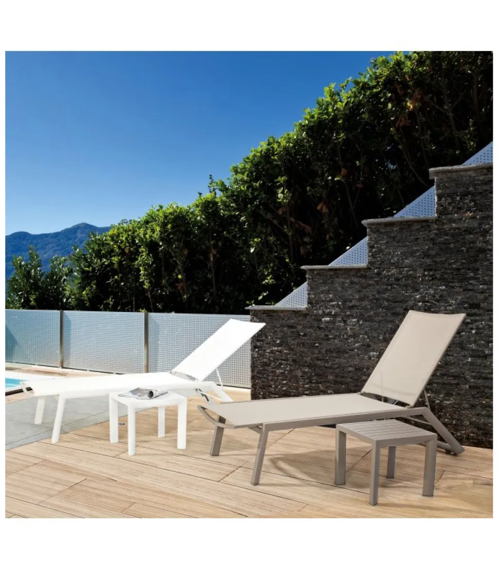 Struttura In Alluminio, Verniciato A Polvere (Poliestere). Seduta E Schienale Rivestiti In Textilene Phifer 2X2. Ruote In Plastica E Viteria In Acciaio Inossidabile. Schienale Reclinabile (4 Posizioni).
