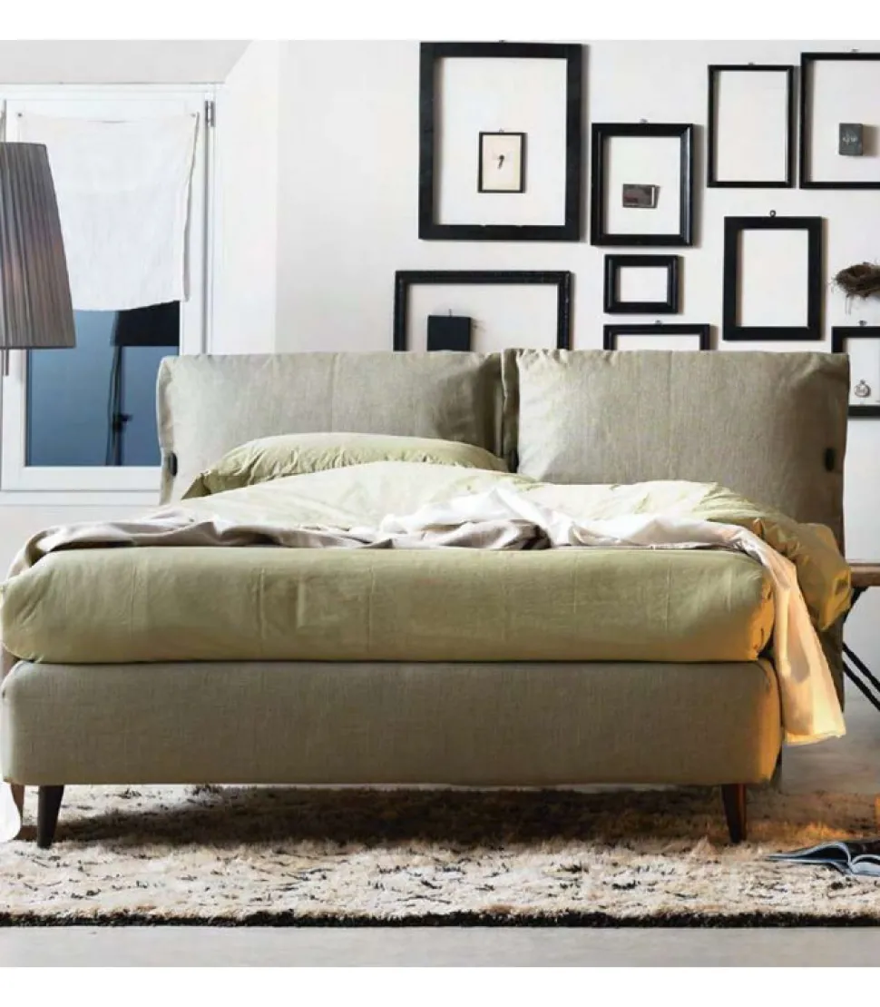 La Morbida Testata, Dalle Forme Singolari, E Caratterizzata Dal Tessuto Accoppiato A Una Soffice Ovatta, Che Rende Le Superfici Gradevoli Al Tatto. Puo Essere Rifinita Con Il Classico Fiocco O Con Il Nuovo Alamaro; Entrambi Possono Essere Scelti Nello Stesso Tessuto E Colore Del Letto Oppure In 5 Diversi Colori Di Vera Pelle.