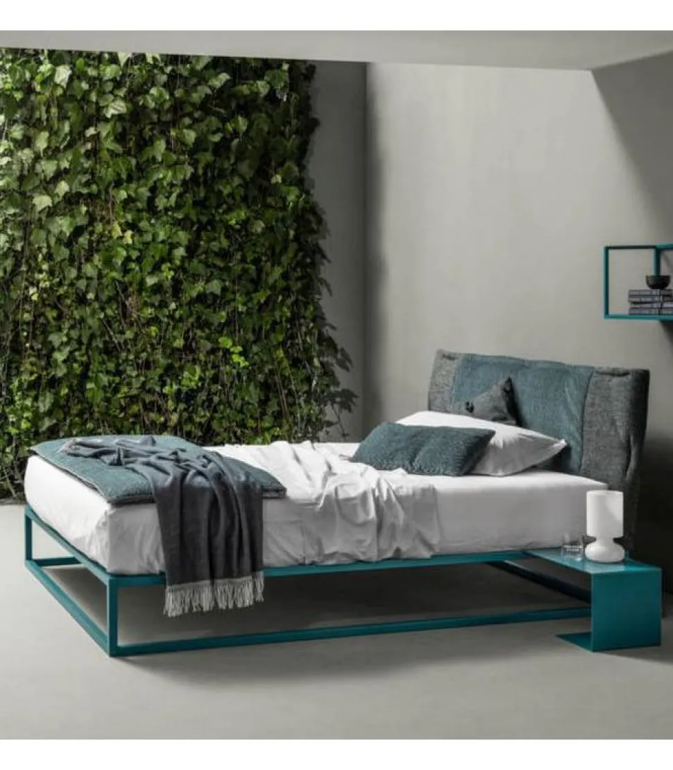 Letto Frame Dress In Metallo Colorato Con Testiera Imbottita Reversibile