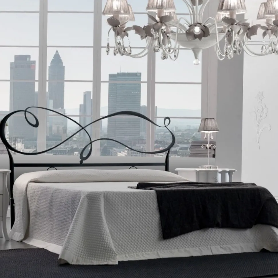 Letto Matrimoniale In Ferro Battuto Nuvola, Stile Classico E Lineare In Finitura Bianco Satinato O Nero Grafite, Disponibile In Versione Matrimoniale.