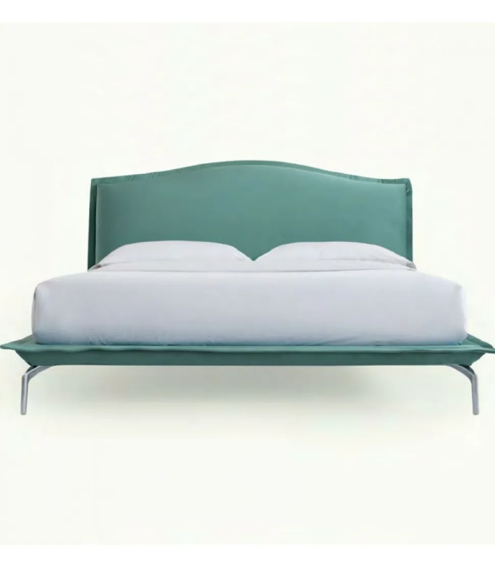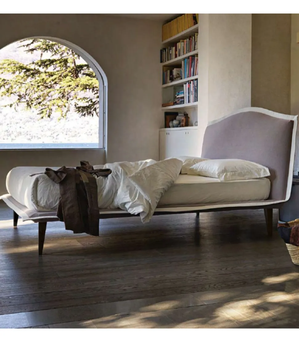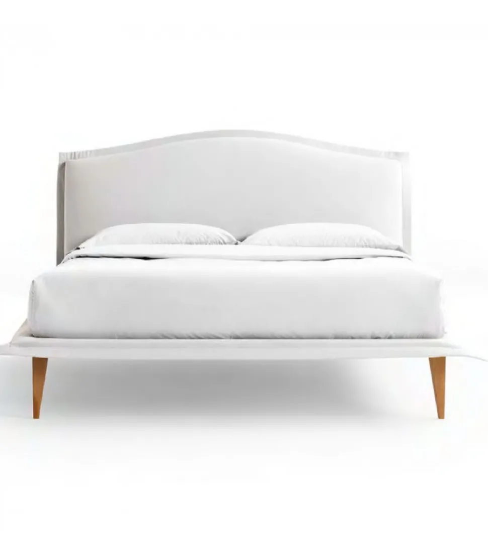 Letto Lyle Voulant, Include Una Rete Ortopedica A 14 Doghe In Legno Di Betulla Da 65 Millimetri. Lyle Voulant Ha Una Testata Leggermente Inclinata, Per Un Maggior Comfort. Sia La Testata Che Il Giroletto Sono Rifiniti Da Un Bordo A Voulant. I Piedini Sono Disponibili In Legno Naturale, Wenge E Bianco O Metallo Bianco O Cromato. E Imbottito E Rivestito Di Tessuti Completamente Sfoderabili.
