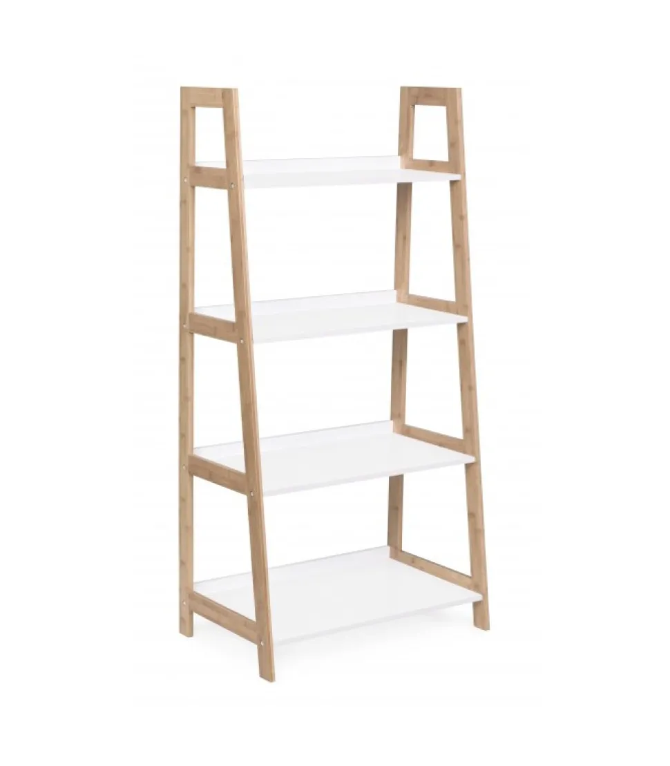 Struttura In Legno Di Bamboo. Ripiani In Mdf Laccati Bianco Opaco. Da Assemblare.