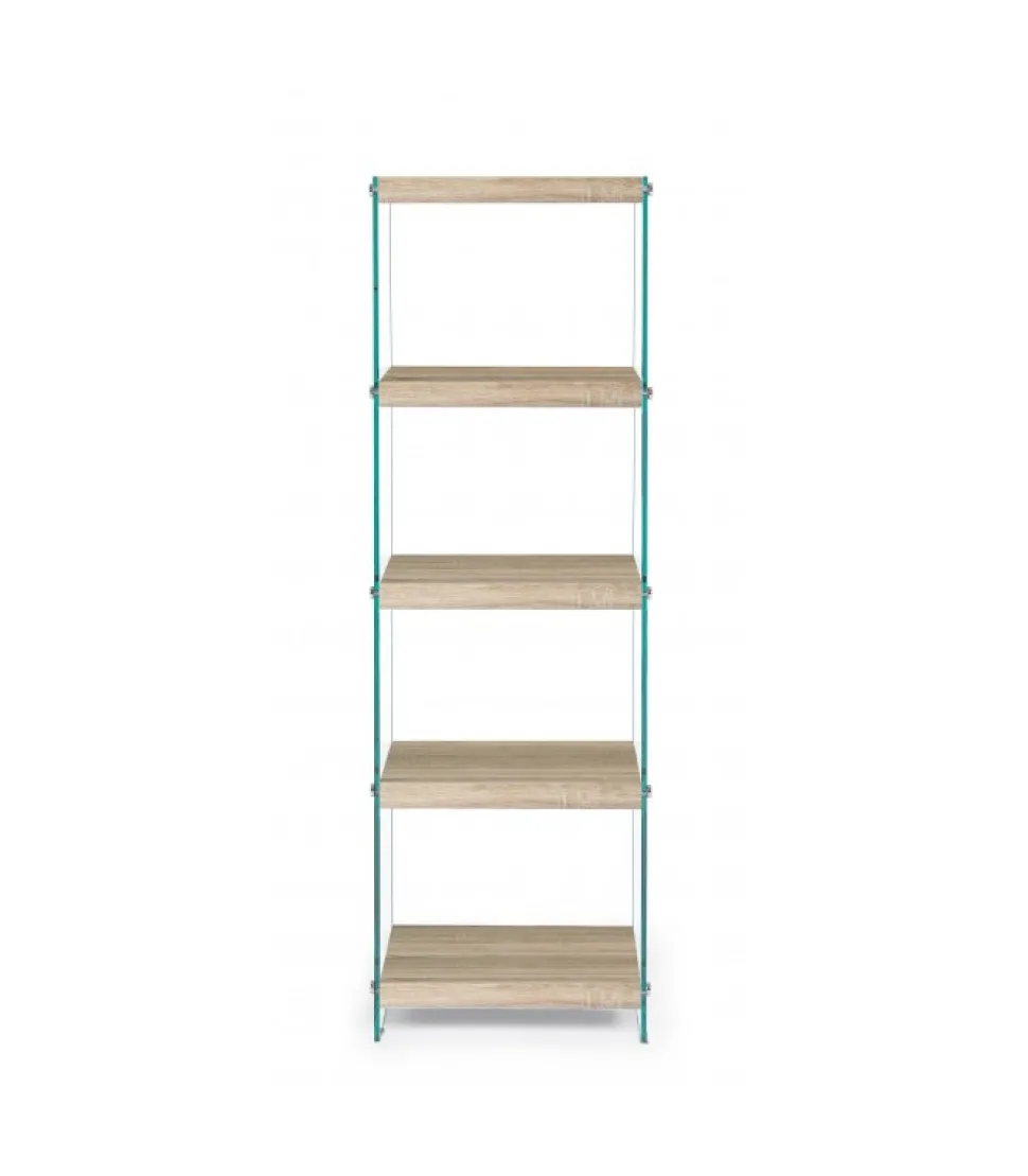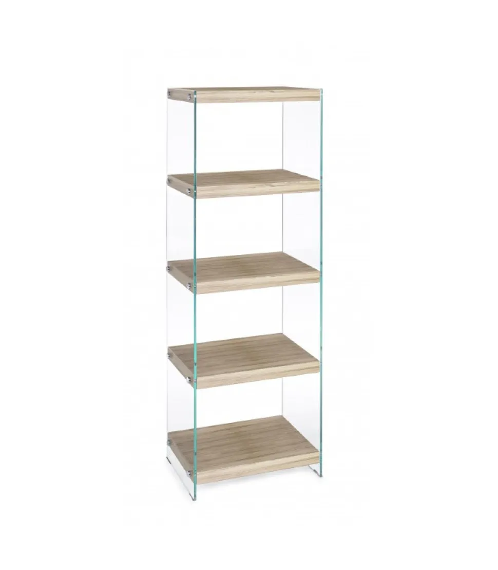 Libreria 5P Line Kenyamensole In Mdf Rivestite In Carta Melaminica Effetto Legno- Fianchi In Vetro Temperato Spessore 12Mm- Da Assemblare.Dimensioni:40(L) – 30(P) – 131(H)