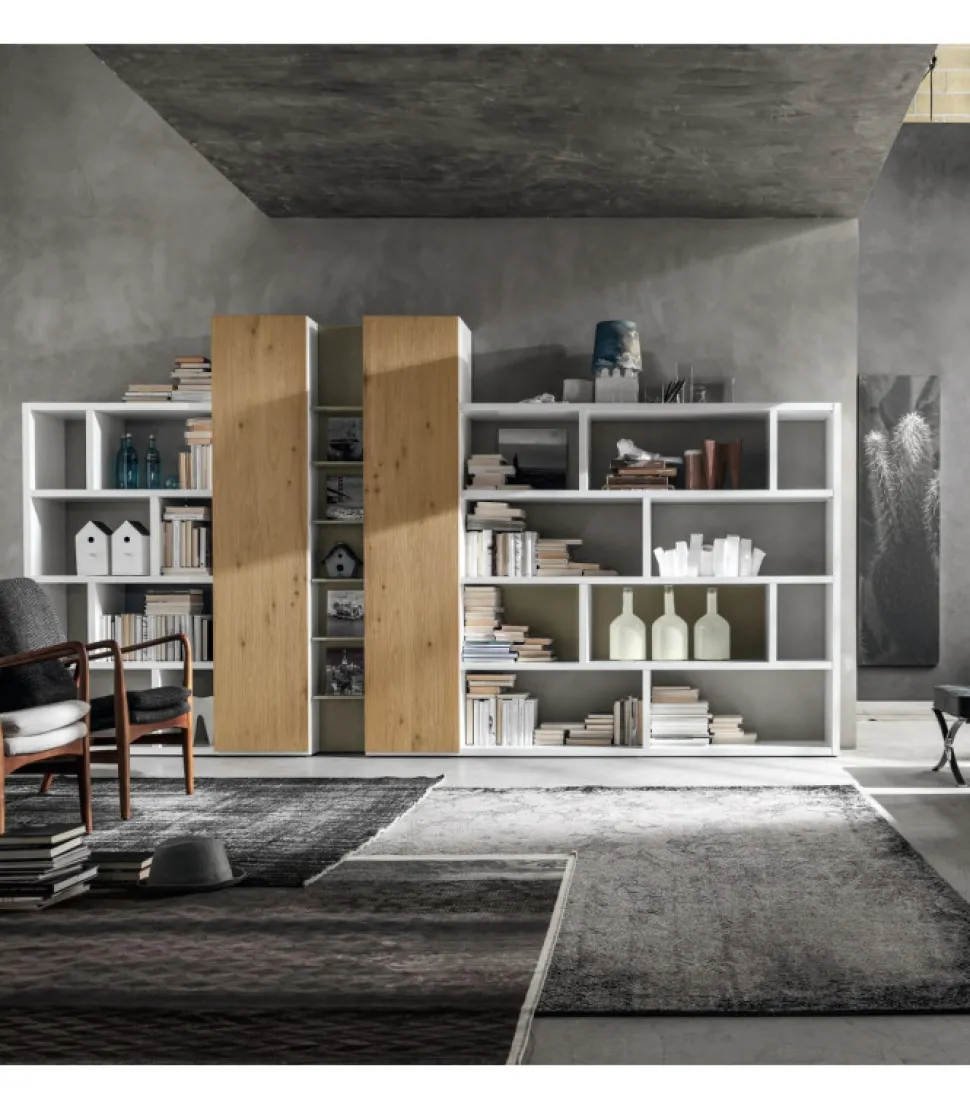 Libreria Con Vani A Giorno E Armadiotti Verticali, Per Organizzare Gli Spazi Coniugando L’Estetica Alla Praticita.