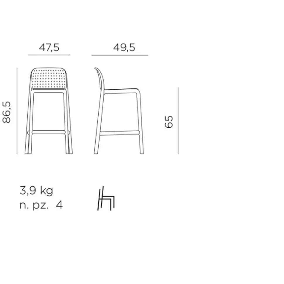 Lido Mini Outdoor, Sgabello Impilabile Fisso In Polipropilene, Per Esterni Ed Interni