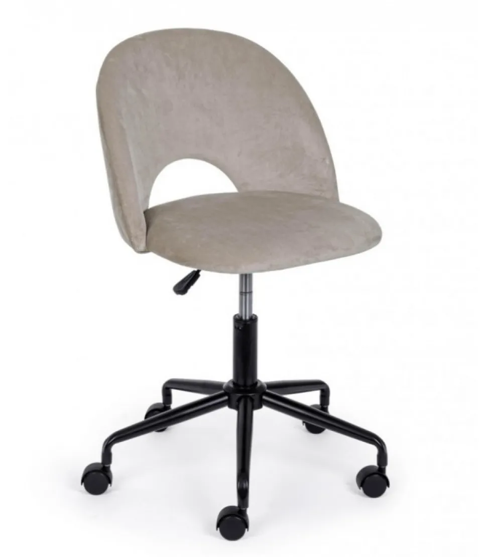 Sedia Uff. Linzey Tortora Base In Acciaio Verniciato A Polvere O60 Cm. Ruote In Plastica (Pp). Struttura In Compensato. Imbottitura In Schiuma Poliuretanica. Rivestimento In Velluto (100% Poliestere). Regolabile In Altezza Con Sistema A Gas. Da Assemblare. – Dimensioni In Cm. 53 (L.) 60 (P.) 82 ( H.) 46 ( H1)