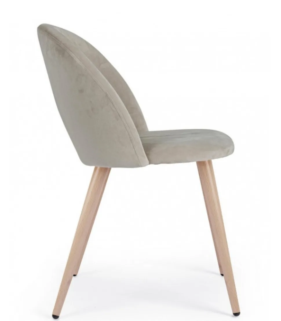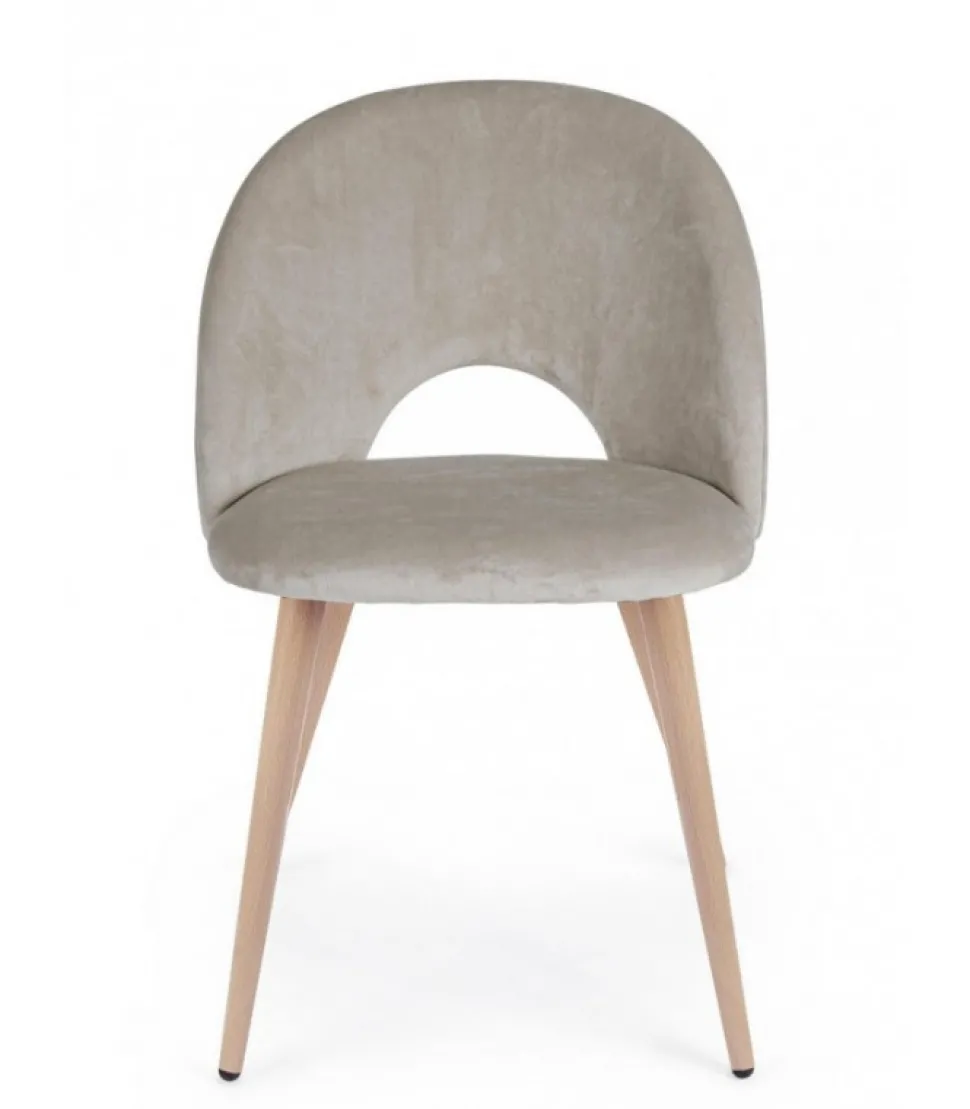 Sedia Linzey Tortora Gambe In Acciaio Verniciate Effetto Legno Naturale. Struttura In Compensato. Imbottitura In Schiuma Poliuretanica. Rivestimento In Velluto (100% Poliestere). Gambe Da Assemblare. – Dimensioni In Cm. 53 (L.) 60 (P.) 82 ( H.) 46 ( H1)
