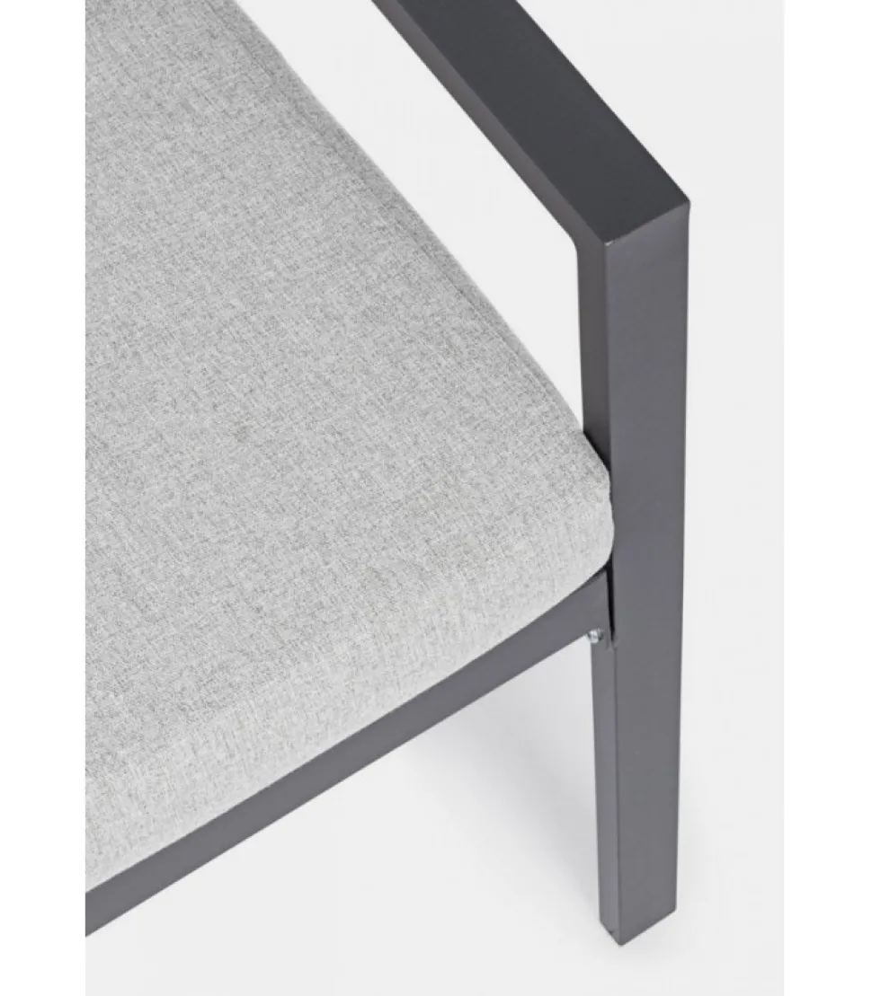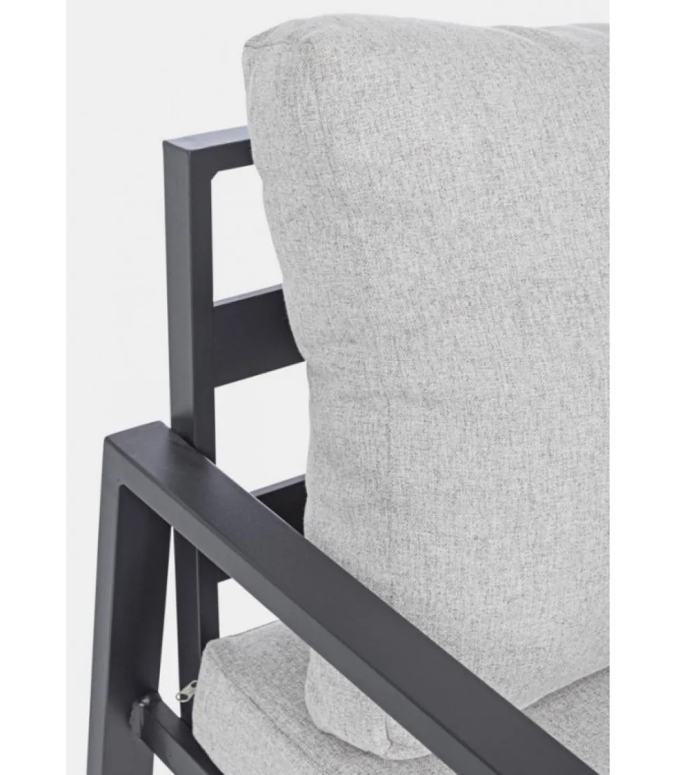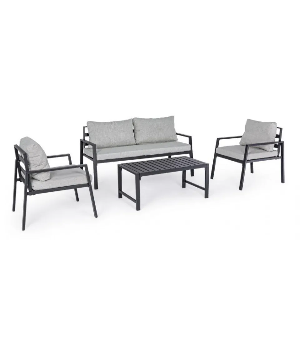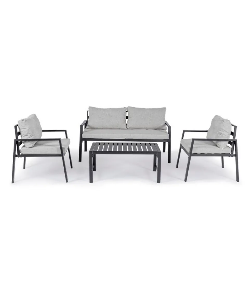 Set4 Salotto C-C Lorillard New Antracite Alluminio Verniciato A Polvere (Poliestere). Cuscini Sfoderabili Con Tessuto Spun Poly (Poliestere). Da Assemblare. – Dimensioni In Cm. A 65 (L.) 70 (P.) 82 H – 44 ( H1) 56 ( H2) 72 H3 / B 141 (L.) 70 (P.) 82 H – 44 ( H1) 56 ( H2) 72 H3 / C 90 (L.) 50 (P.) 46 H