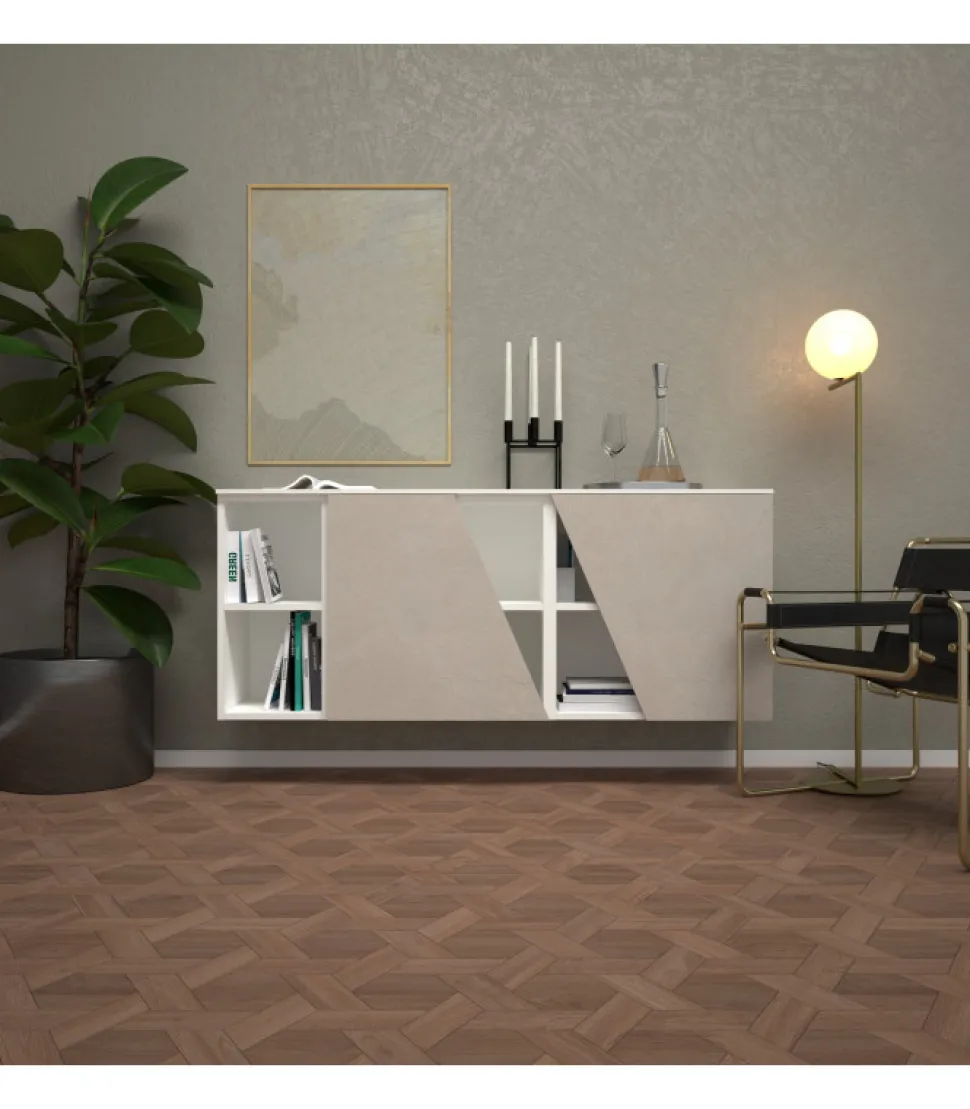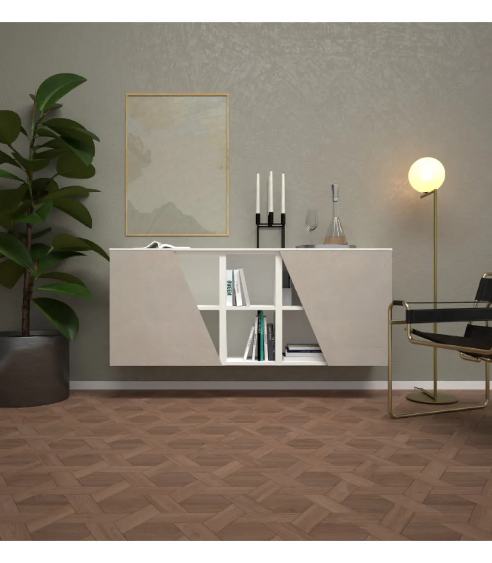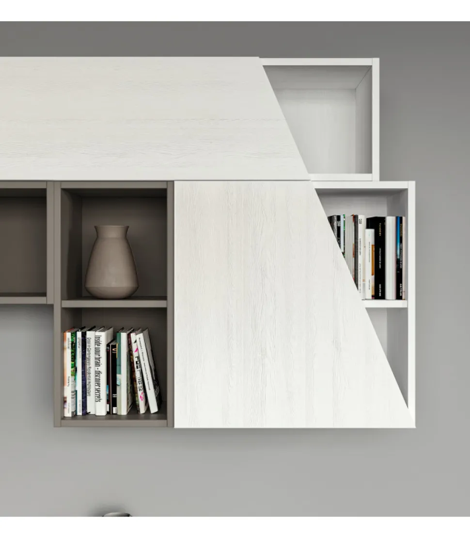 Madia A Terra O Sospesa, Composta Da Moduli Libreria E Due Ante Inclinate Che Lasciano Travedere Solo Una Parte Dell’Interno.