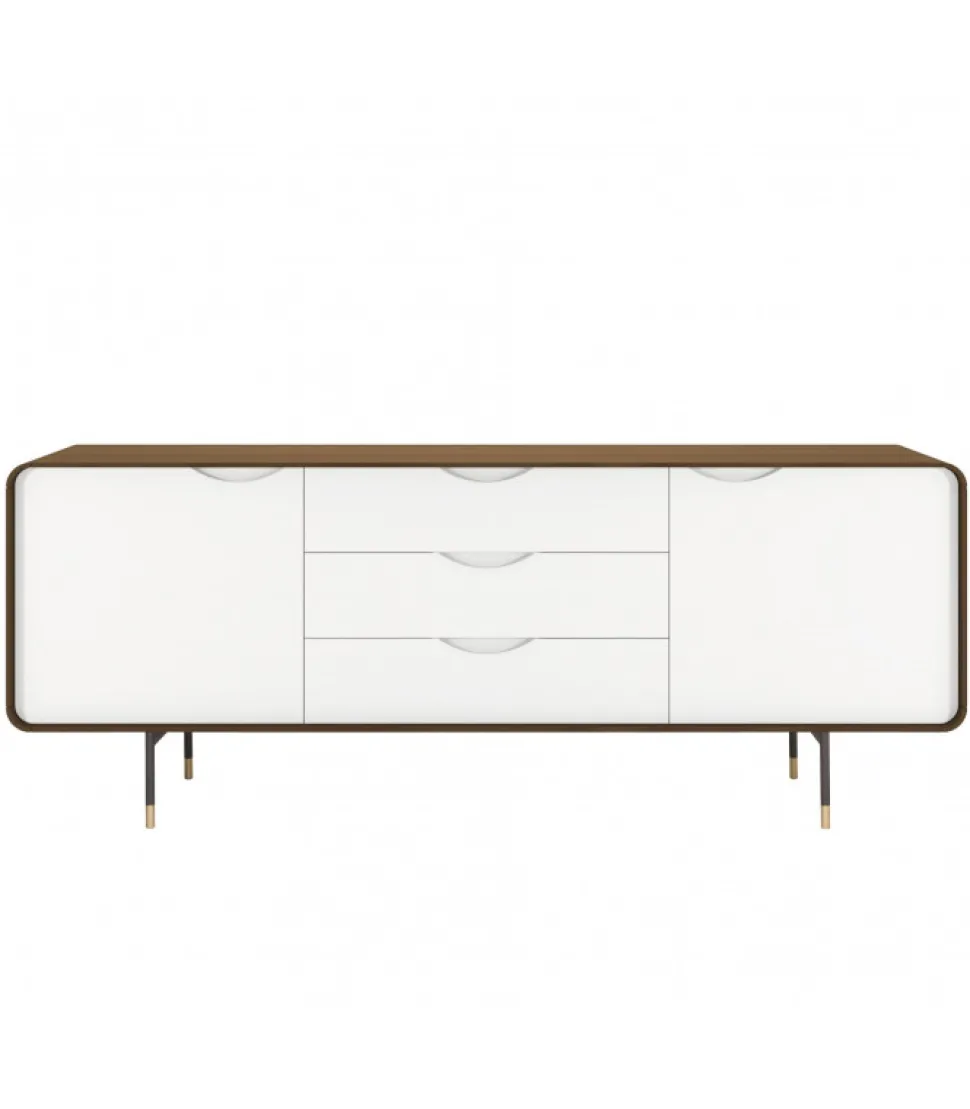 Materiali Impiegati. Struttura Con Ante, Cassetti, Scocca E Ripiani Laccati Opachi E Cover Esterna Placcata In Legno Noce Canaletto. Base In Metallo Verniciato A Polveri Epossidiche. Ferramenta Di Fissaggio In Acciaio Zincato E Componenti Plastici.
