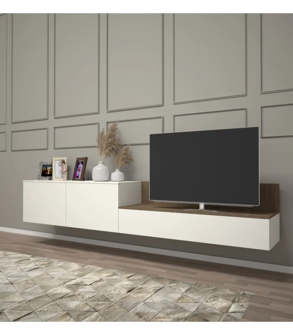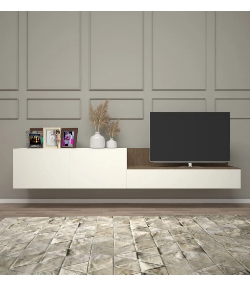 Madia Composta Da Un Elemento Sospeso Con Due Ante, Un Elemento A Cassetto E Un Top Con Schienale. Scegliendo Un Colore In Contrasto Rispetto La Madia, Si Crea Un Gioco Di Tonalita Che Dona Brio Alla Composizione.