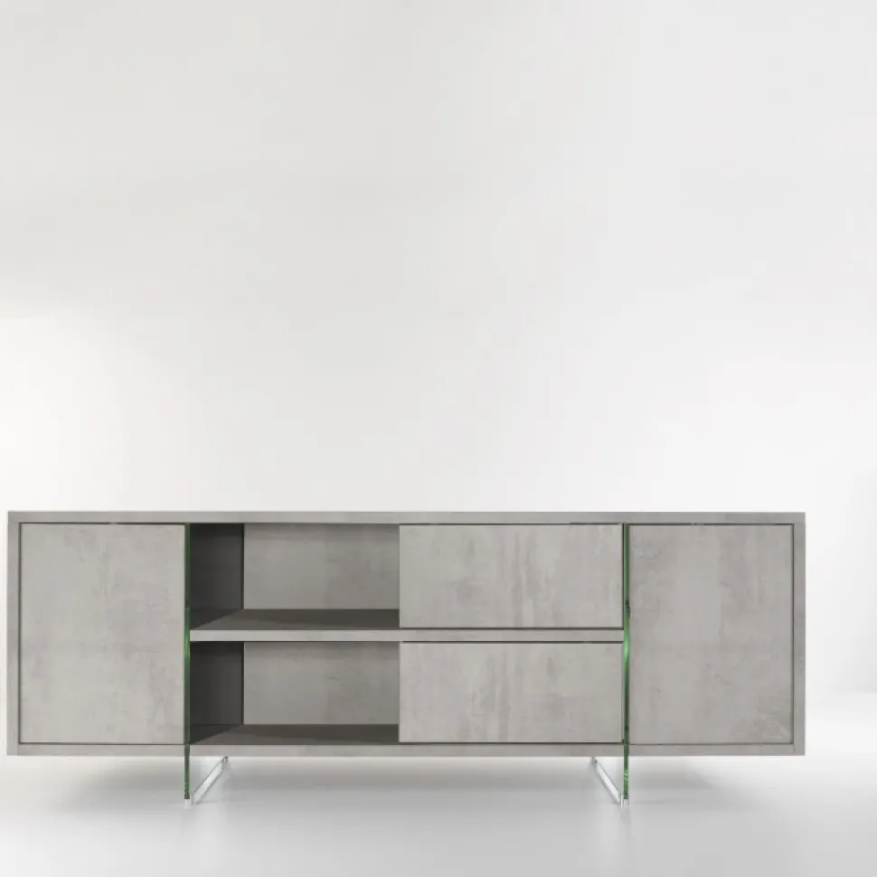 All’Interno Della Madia Sono Inseriti 2 Vetri Temprati Da 10 Mm. Che Sostengono La Struttura E Dividono Gli Spazi Con Leggera Trasparenza, Creando Anche Un Piacevole Effetto Sospeso Del Mobile.