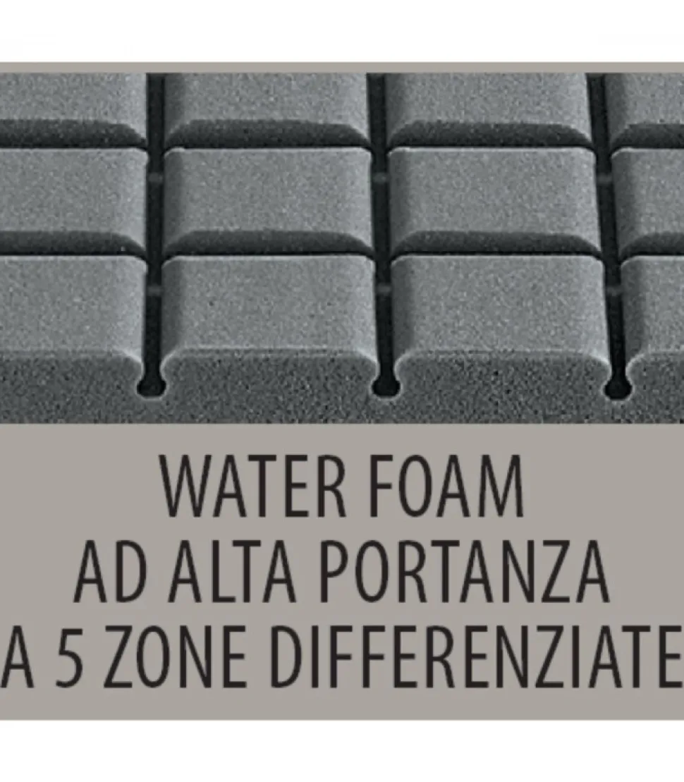 Materiale, Grazie Ad Una Lavorazione Altamente Tecnologica, Fa Si Che Il Materasso Riacquisti Sempre La Sua Forma Iniziale Anche Dopo Numerose Compressioni E Indipendentemente Dal Peso Che Deve Sorreggere. I Materassi In Water Foam Possiedono Caratteristiche Preziose, Quali Un Elevato Livello Di Traspirazione Che Si Trasforma In Un Senso Di Benessere E Freschezza. La Sua Struttura A Celle Aperte Favorisce Il Passaggio Costante Dell’Aria All’Interno Del Materasso, Disperdendo L’Umidita Corporea E Creando La Condizione Ideale Per Impedire La Formazione Di Acari E Batteri. Il Water Foam E Ecologico E Anallergico Poiche Schiumato Igienicamente Ad Acqua.