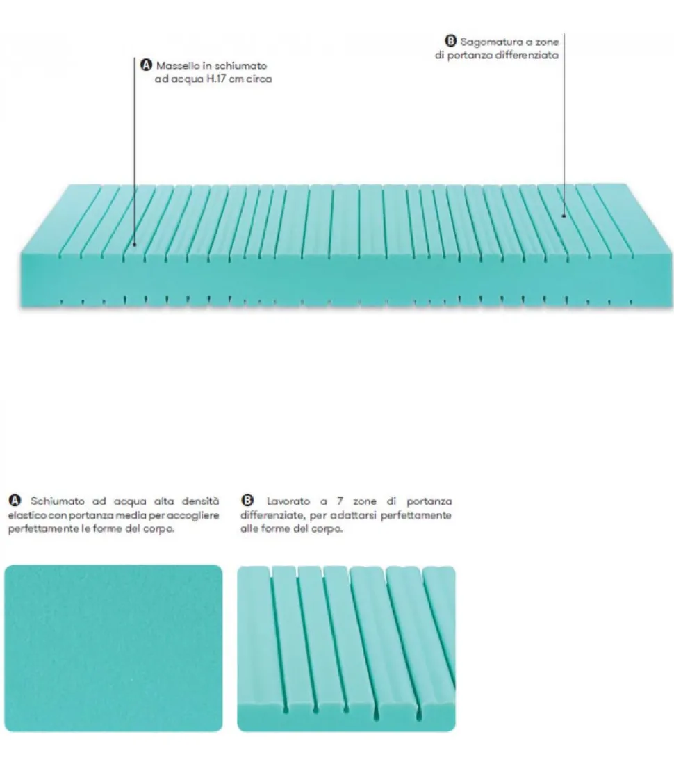 Materasso In Schiumato Ad Alta Densita E Lavorato A Zone Differenziate Per Il Massimo Del Comfort