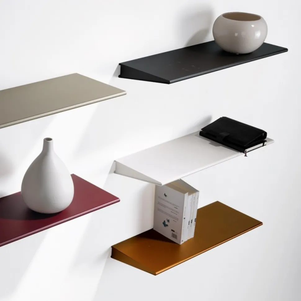Ala E Una Mensola Dal Design Lineare Che Arricchisce Di Colore L’Ambiente. La Struttura Portante In Acciaio