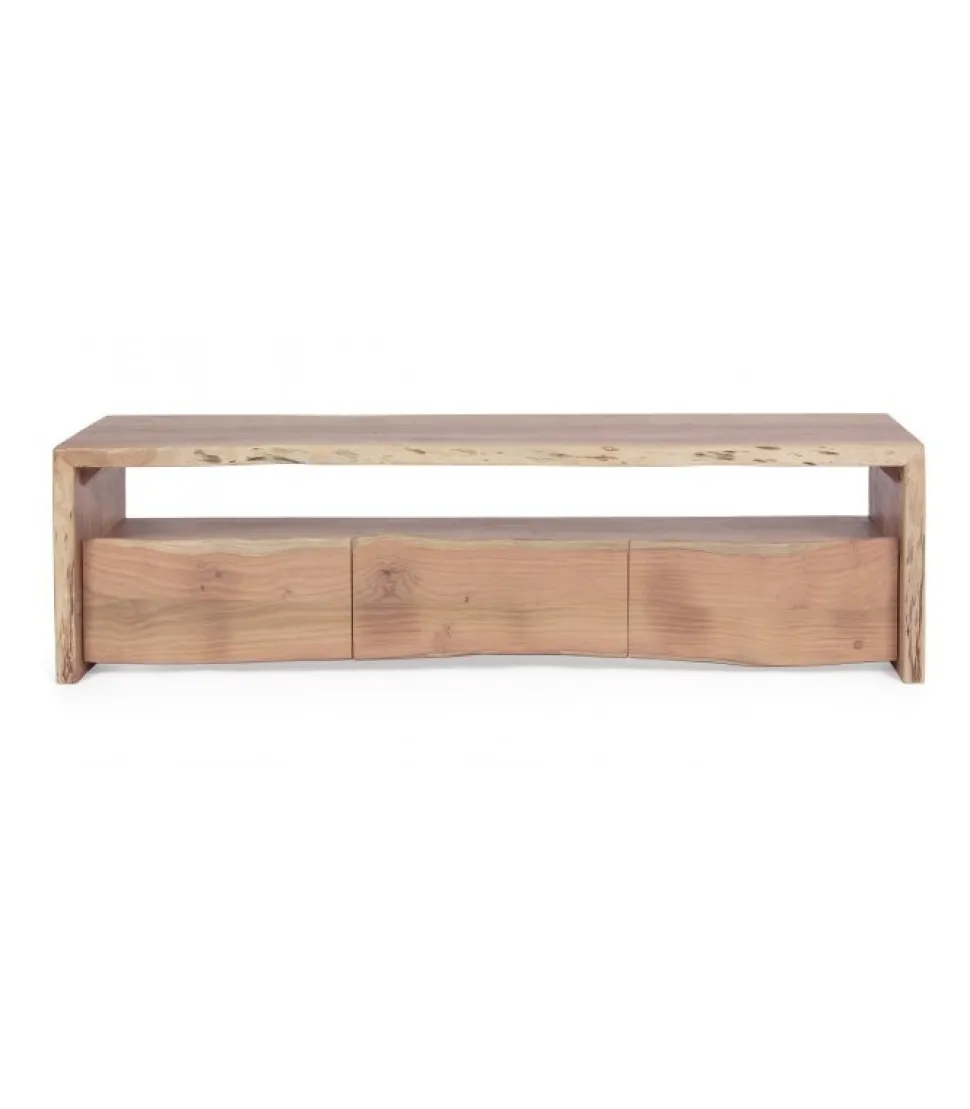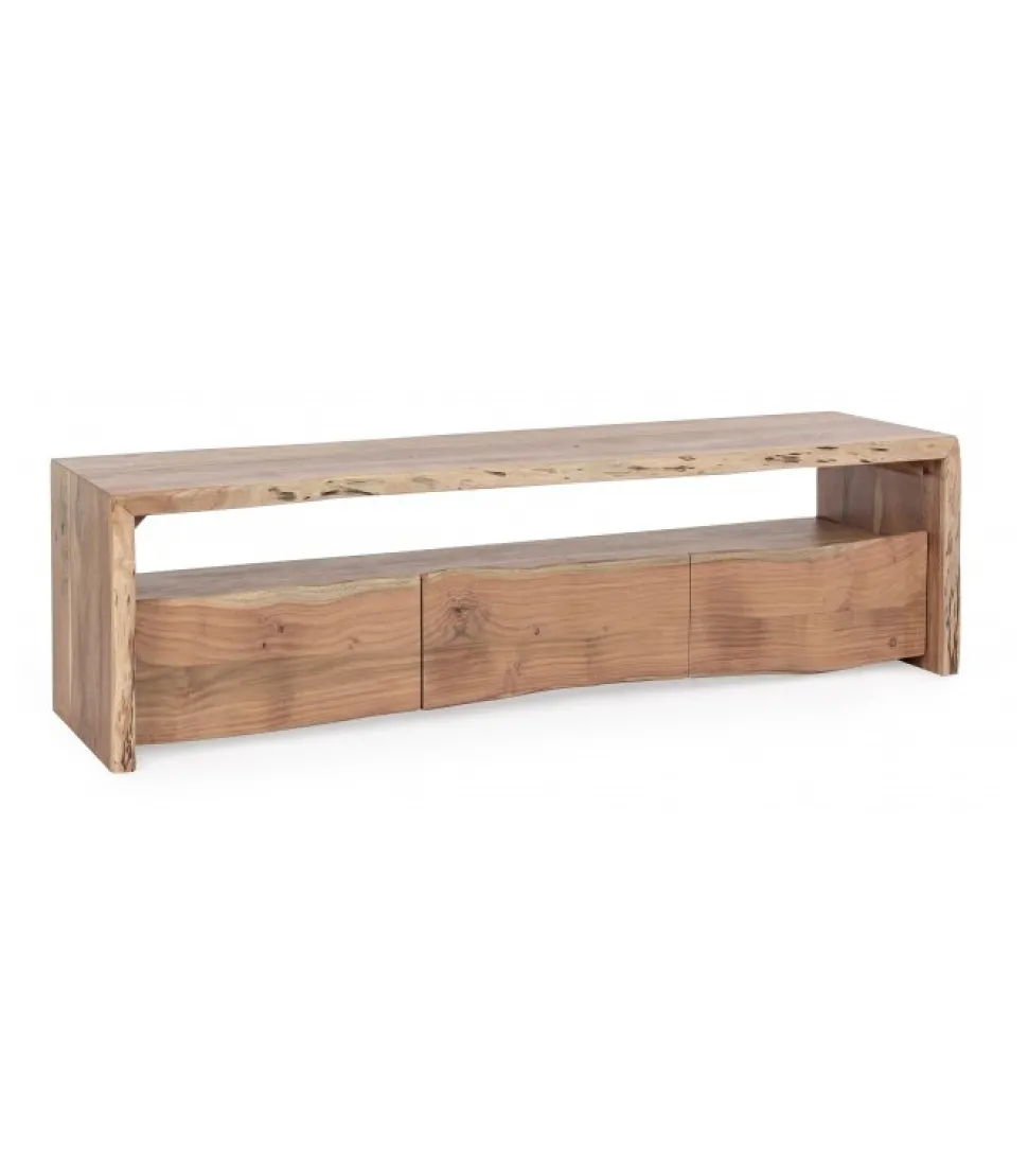 Mobile Basso 3C Eneaslegno Di Acacia- Finitura A Base Di Vernice Poliuretanica- Le Forme Create Dal Legno Sono Indicative- Tutti I Prodotti Saranno Leggermente Diversi L’Uno Dall’Altro.Dimensioni:160(L) – 45(P) – 46(H)