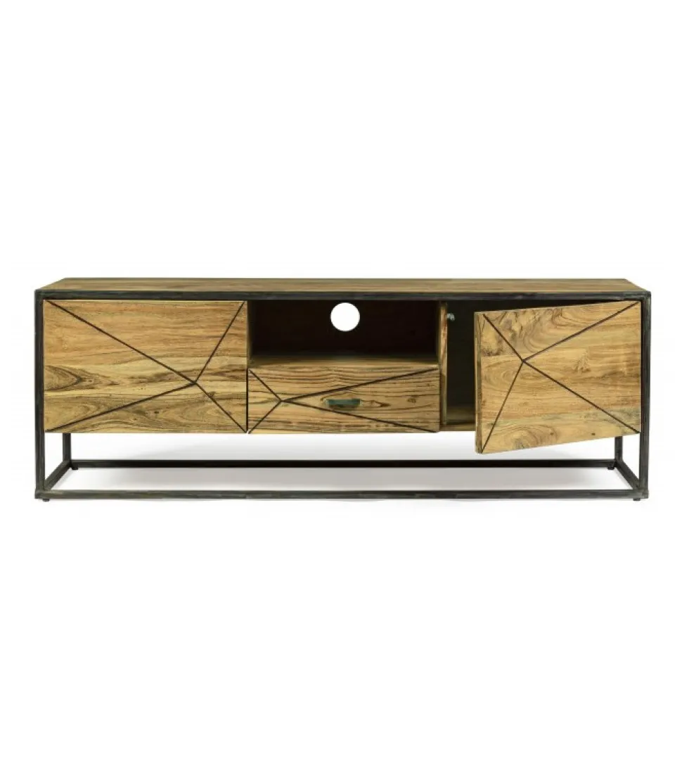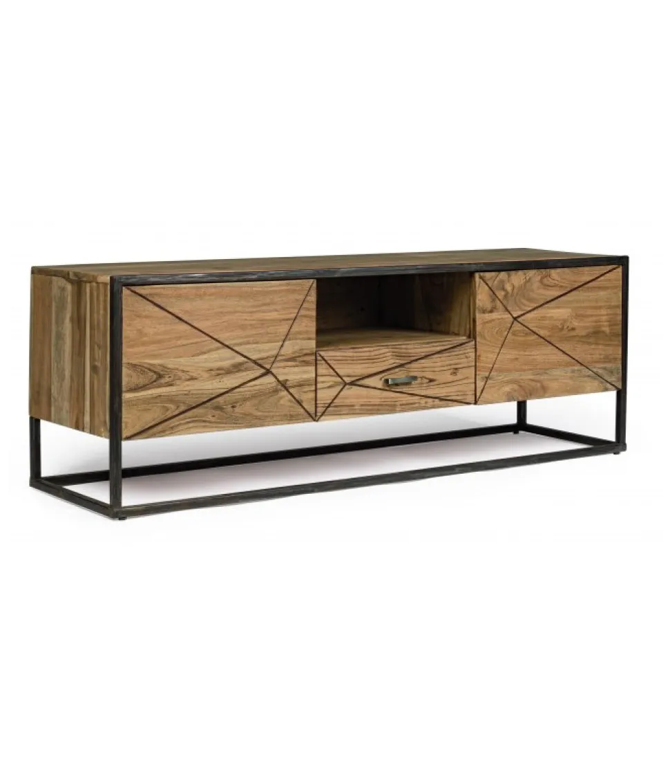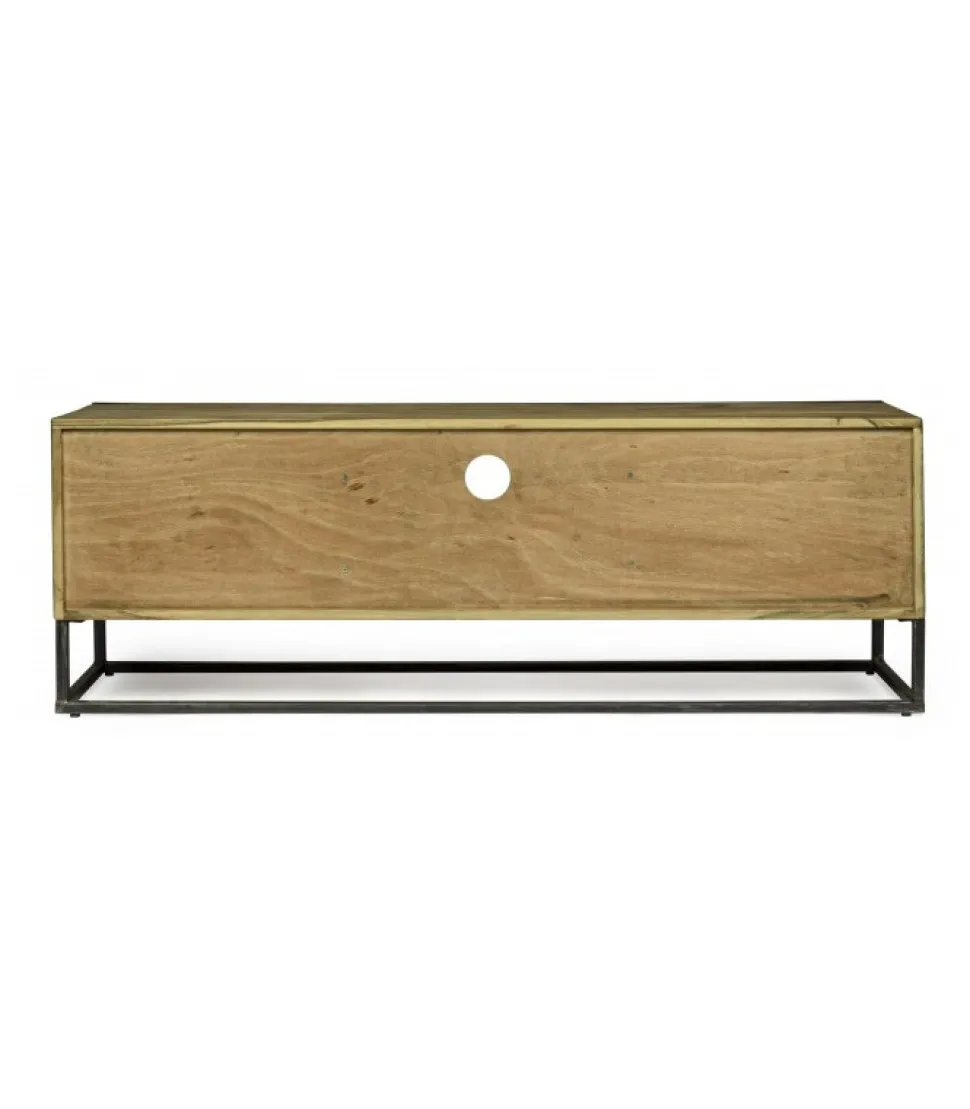 Mobile Porta Tv 2A-1C Egonstruttura In Legno D’Acacia E Acciaio Verniciato A Polvere Epossidica, Schienale In Compensato- Finitura Acrilica Protettiva- Maniglie In Acciaio.Dimensioni:145(L) – 40(P) – 50(H)