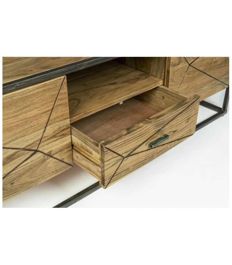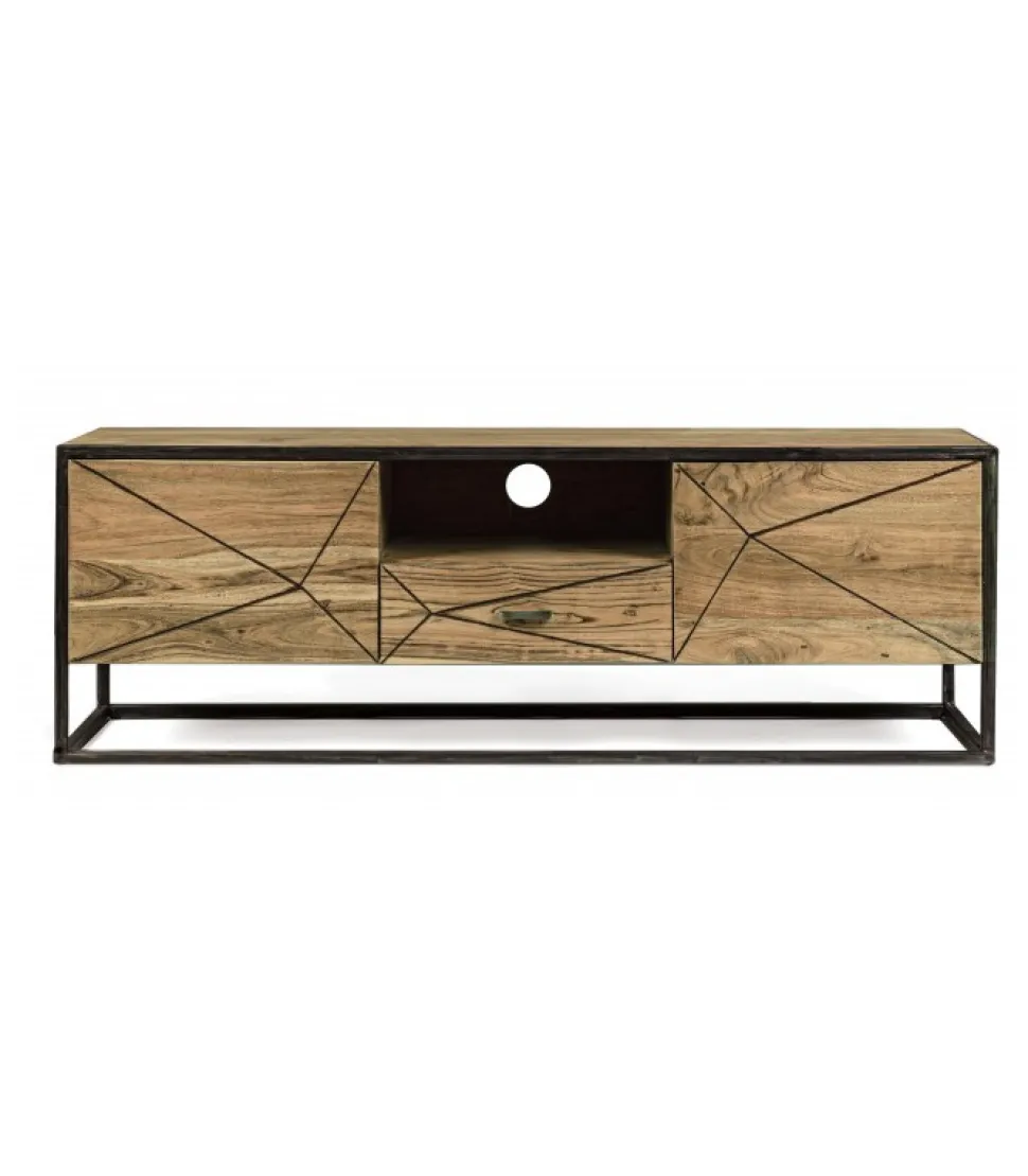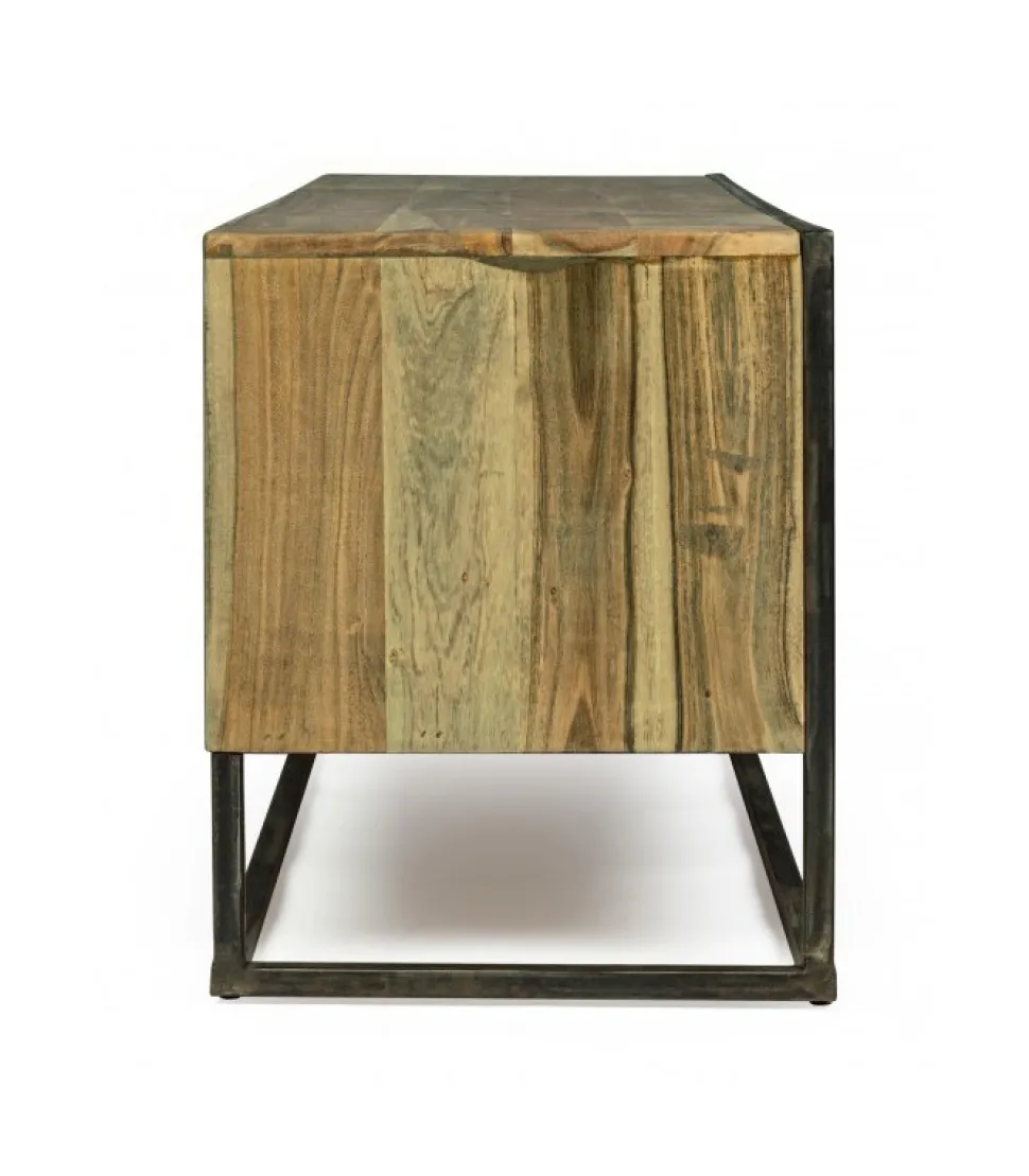Mobile Porta Tv 2A-1C Egonstruttura In Legno D’Acacia E Acciaio Verniciato A Polvere Epossidica, Schienale In Compensato- Finitura Acrilica Protettiva- Maniglie In Acciaio.Dimensioni:145(L) – 40(P) – 50(H)