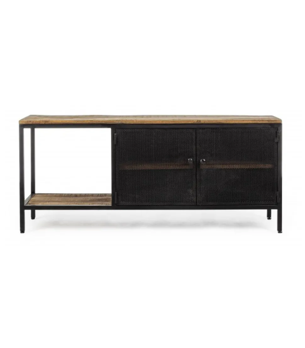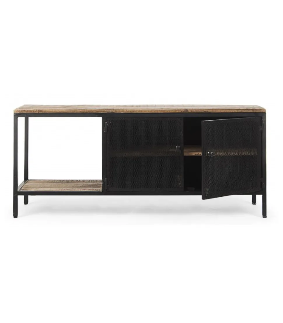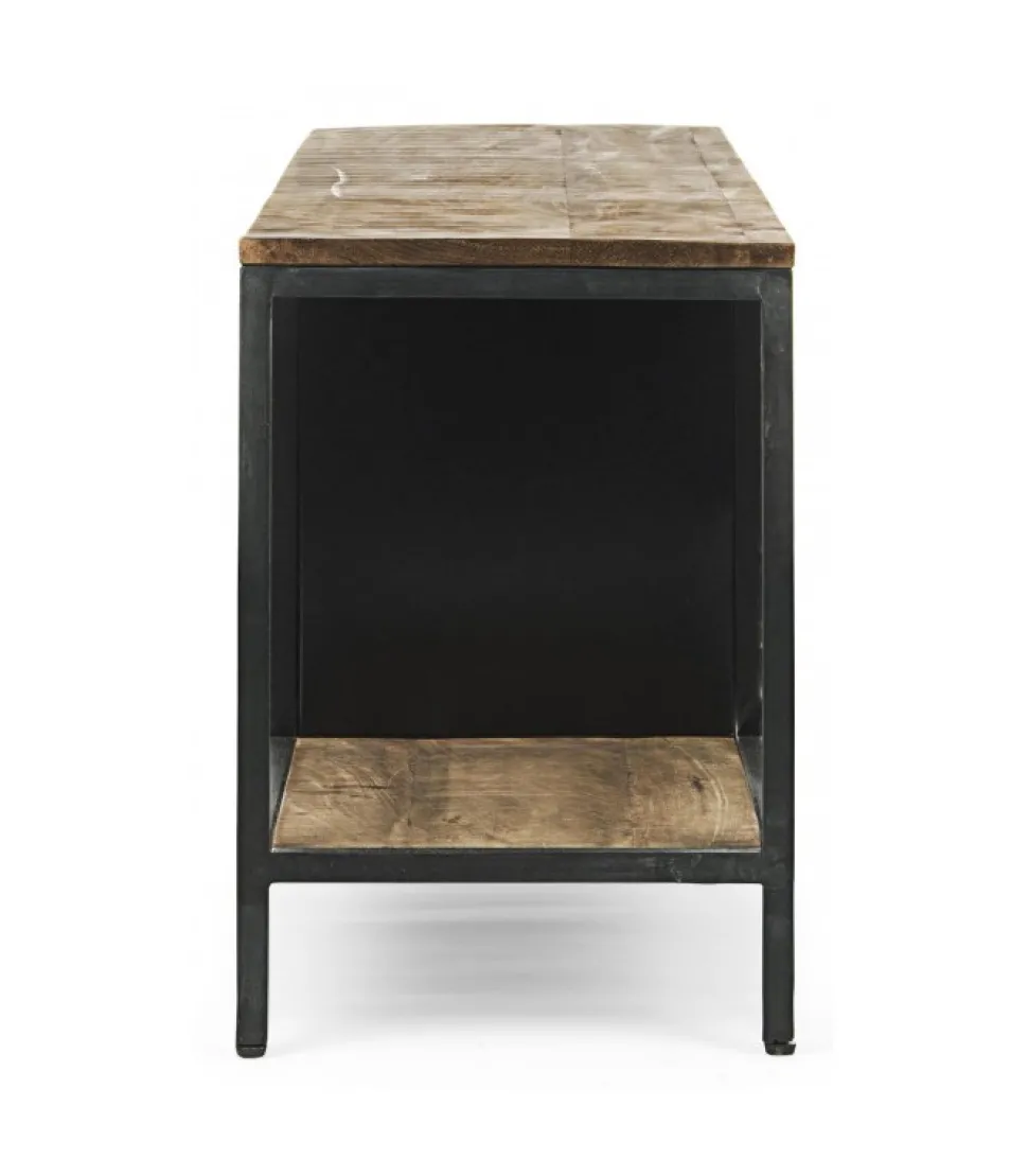 Mobile Porta Tv 2A Rodericstruttura In Acciaio Verniciata A Polvere Epossidica- Ripiani In Legno Di Mango Con Finitura A Base D’Acqua- Vano Porta Comprensivo Di Mensola.Dimensioni:120(L) – 35(P) – 52(H)