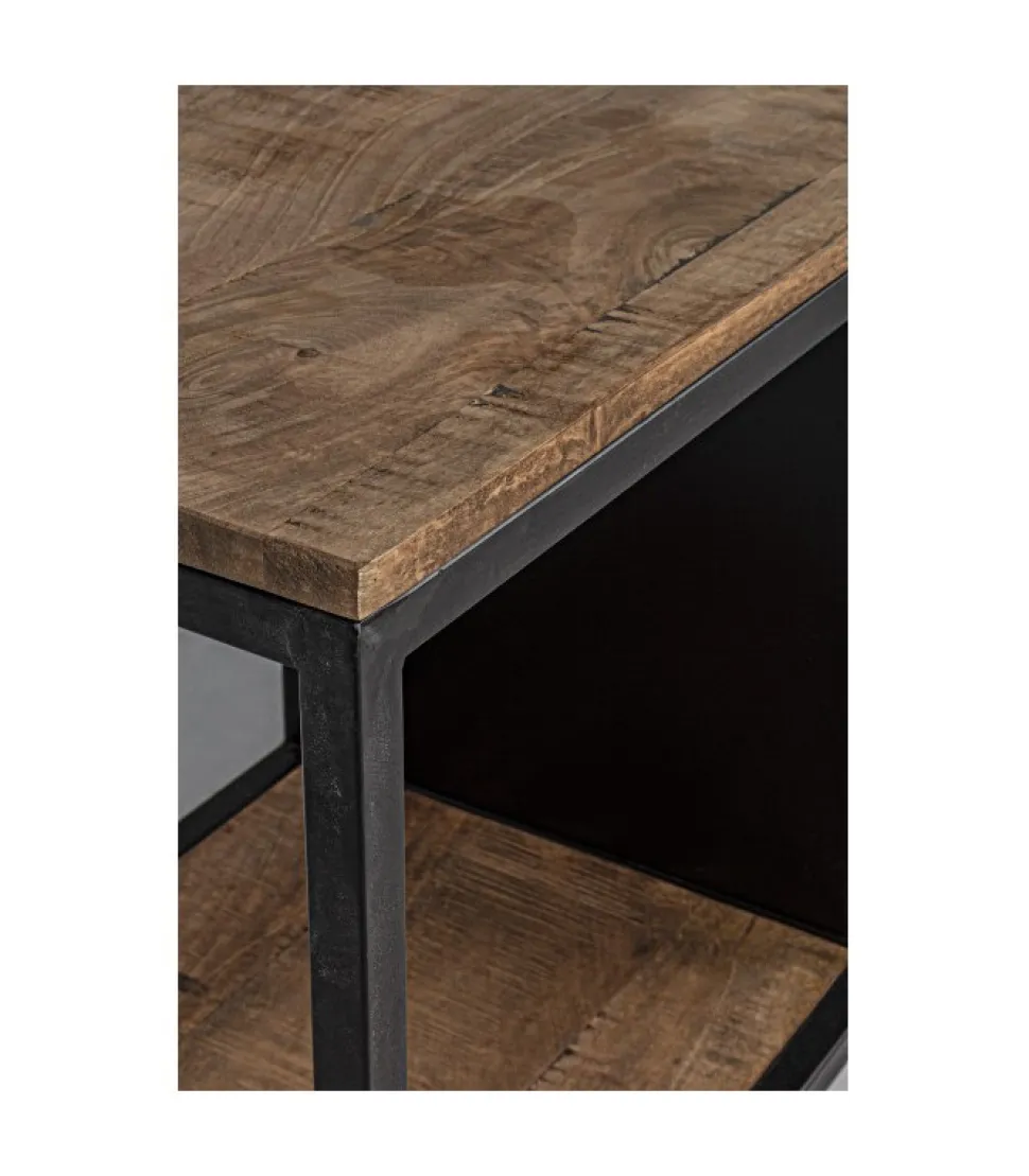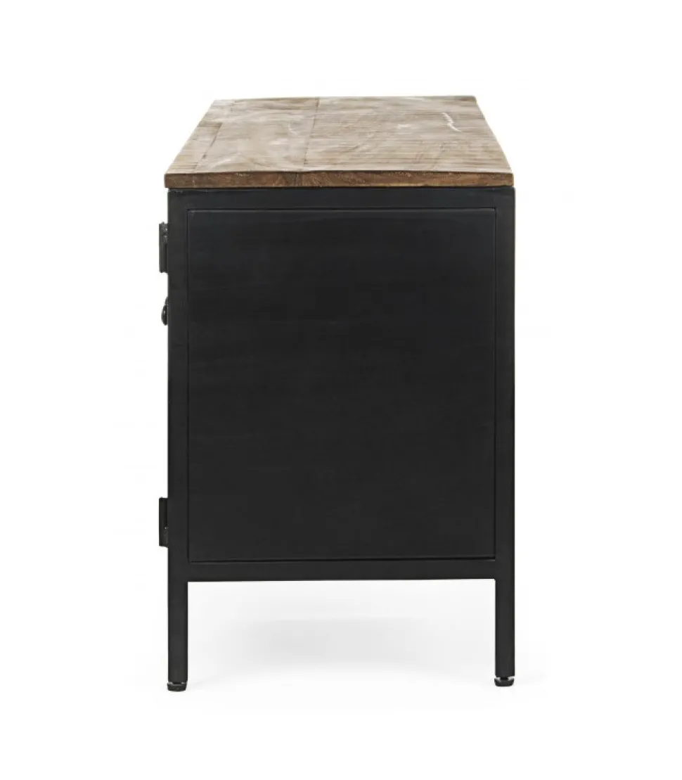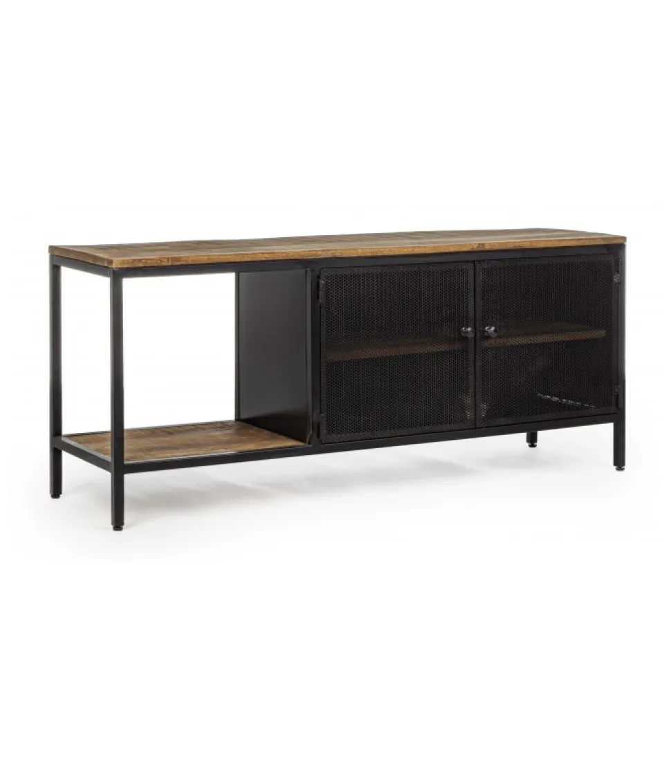 Mobile Porta Tv 2A Rodericstruttura In Acciaio Verniciata A Polvere Epossidica- Ripiani In Legno Di Mango Con Finitura A Base D’Acqua- Vano Porta Comprensivo Di Mensola.Dimensioni:120(L) – 35(P) – 52(H)