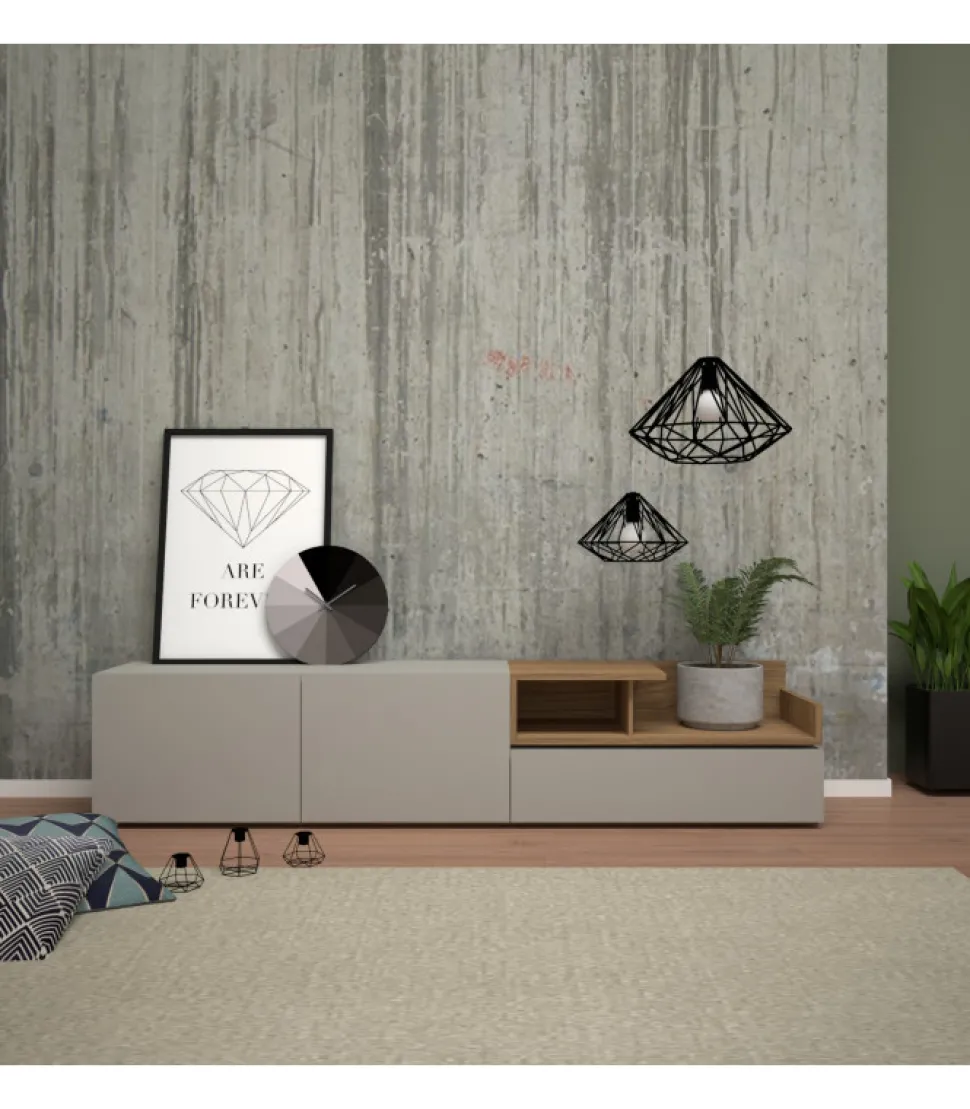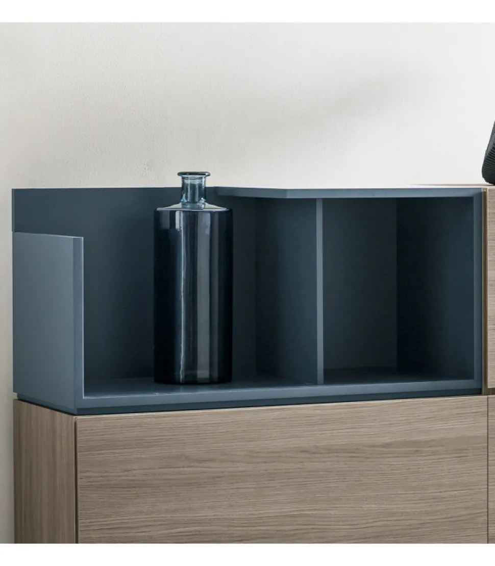 Madia Di Design Dalle Linee Semplici, Esaltate Dall’Alternanza Tra Vani A Giorno E Moduli Chiusi. Il Mobile E Completato Da Finiture E Colori Piacevoli Alla Vista E Al Tatto.