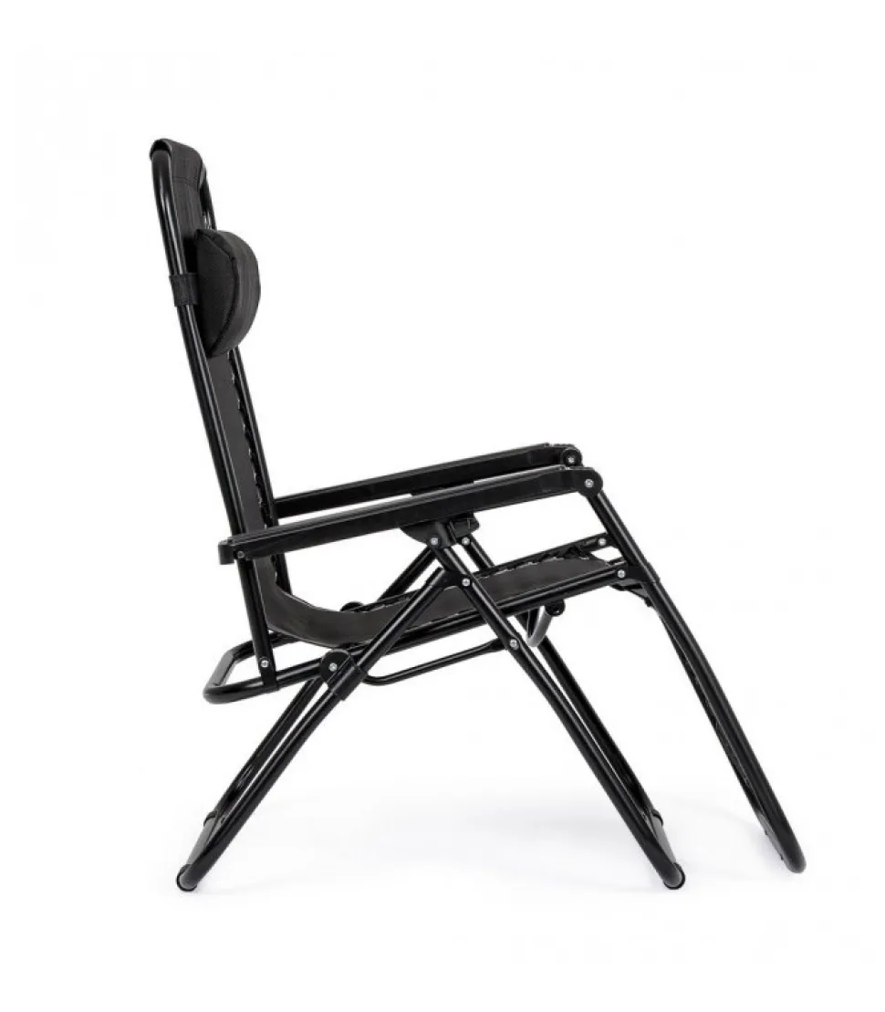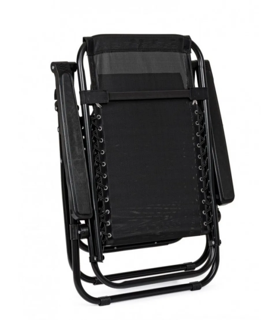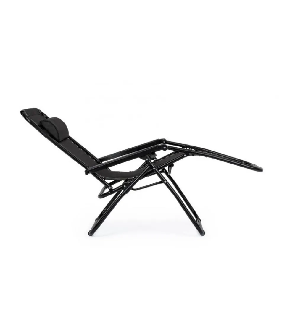 Sedia A Sdraio Morgan Nero Struttura In Acciaio Trattato Per Esterno Tramite Fosfatazione E Verniciato A Polvere (Poliestere) O25X0.8Mm. Tessuto In Textilene 2X1 540Gr/M2. Pieghevole E Reclinabile Tramite Manici In Plastica. – Dimensioni In Cm. 65 (L.) 176 (P.) 80 ( H.) 46 ( H1) – 60 ( H2)