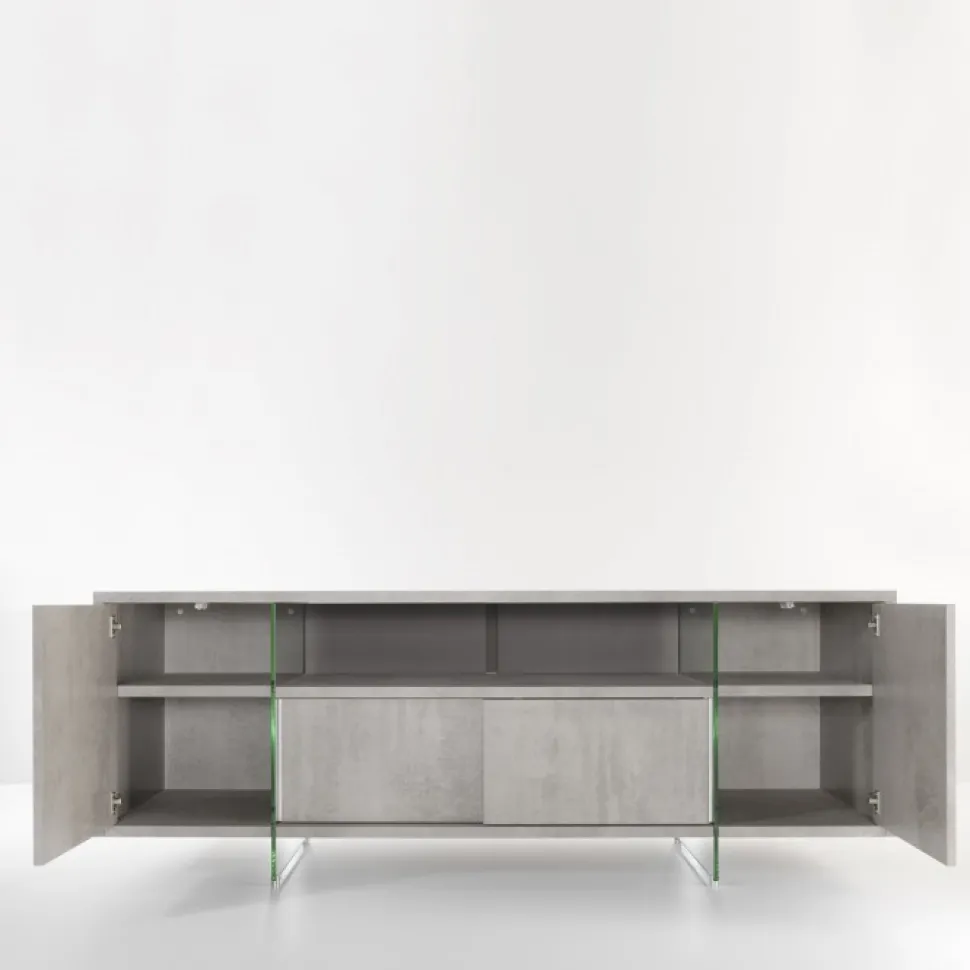 I Fianchi In Vetro Sono Appoggiati Su Piedini In Alluminio Regolabili, Per Adattare Al Meglio Il Mobile Con Eventuali Imperfezioni Del Pavimento.