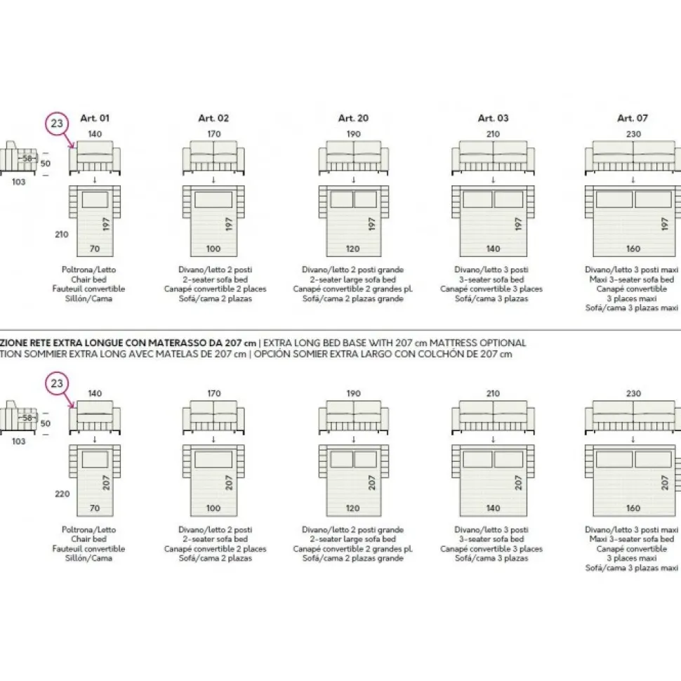 Ampia Gamma Di Personalizzazioni:5 Diverse Larghezze Di Divano 4 Diversi Tipi Di Materassivasta Gamma Di Tessutidisponibile Anche Con Materasso Extralounge L.207 Cm. (Opzionale)Divano Completamente Sfoderabile, Con Sistema Di Apertura Facilitata.