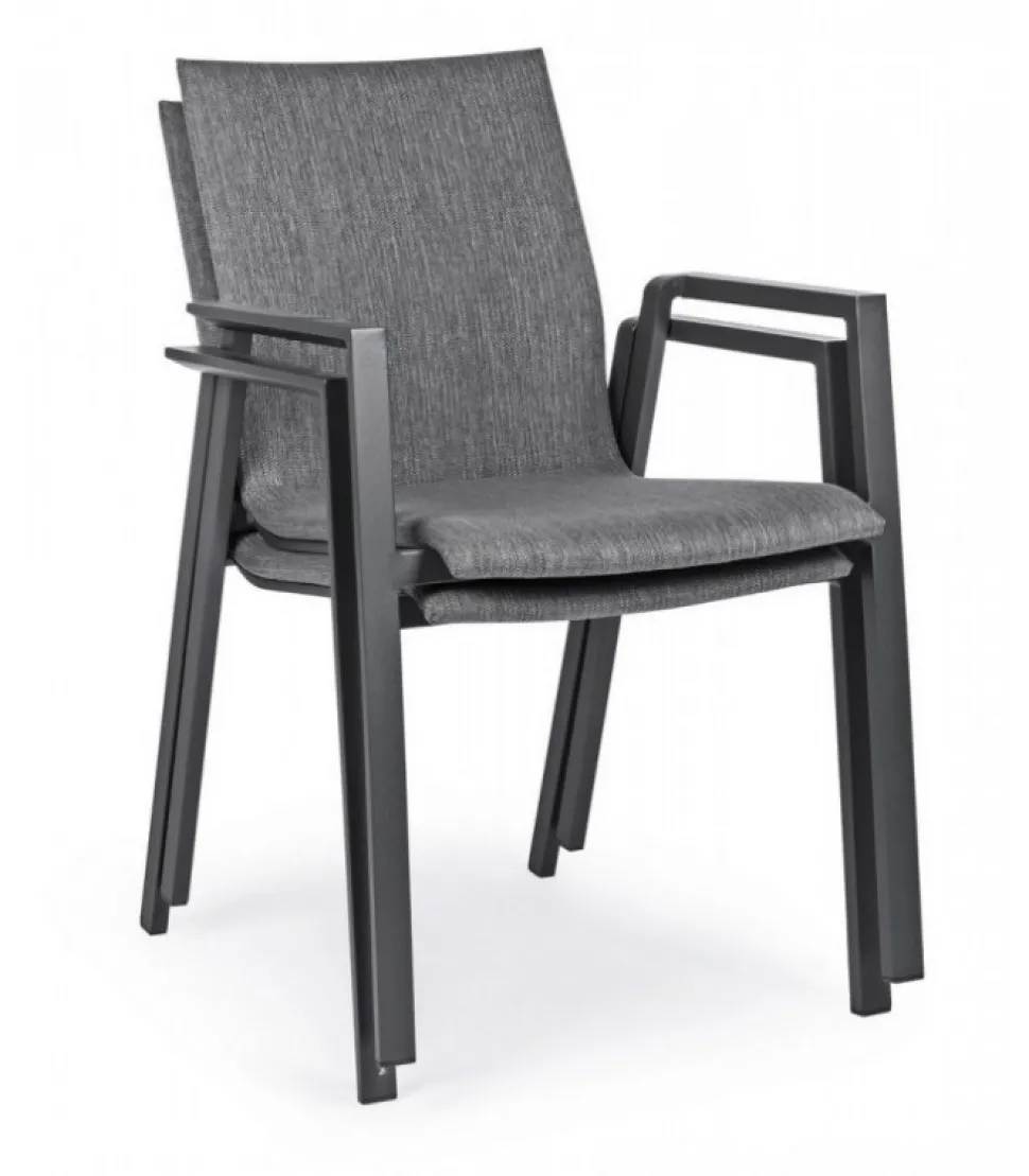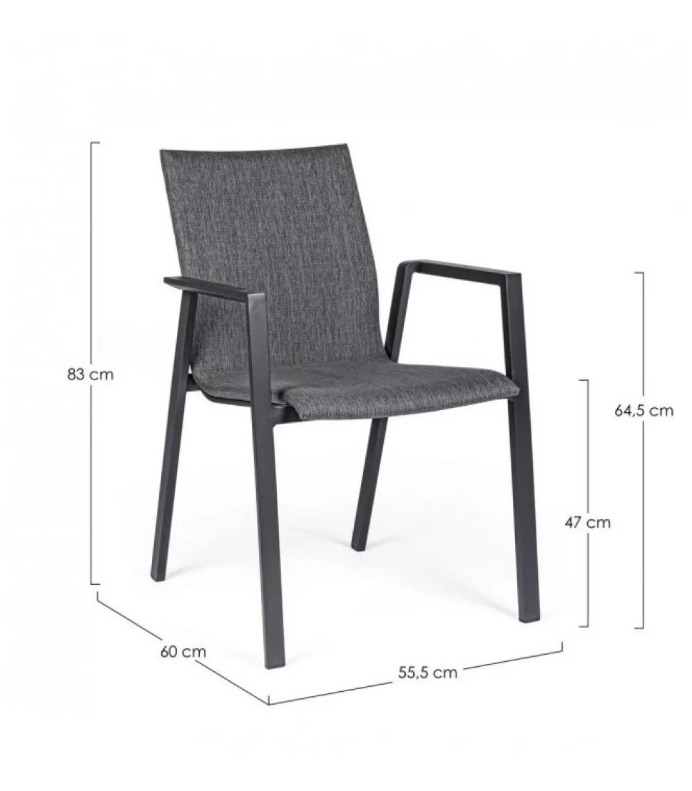 Sedia C-Br Odeon Antracite Jx55 Struttura In Alluminio Verniciata A Polvere (Poliestere). Rivestimento Con Tessuto Misto (70% Textilene, 30% Olefin). Imbottitura Per Esterno Fast Dry Foam. Impilabile. – Dimensioni In Cm. 55.5 (L.) 60 (P.) 83 ( H.) 47 ( H1) – 64.5 ( H2)