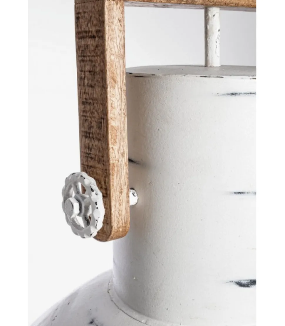 Lampadario 1Luce Odessa Bianco Acciaio Effetto Anticatoe Legno Di Mango. Lamp:E27 Max25W, E27 5W,Comp.Fluor Integr.Risp.En., E27 18W Alog.Risp.En.Lampadina/E Non Inclusa/E Lunghezza Cavo:1.78Mt – Dimensioni In Cm. O51X178 H