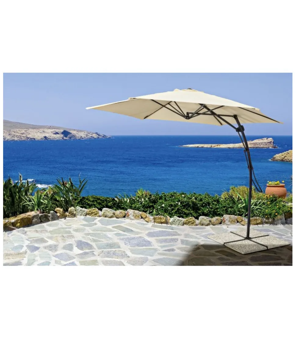 Ombrellone Braccio Sorrento 3M Naturale – Struttura Verniciata A Polvere (Poliestere). Palo In Acciaio O48Mm,6 Stecche In Alluminio 12X18Mm. Apertura Con Maniglia Push Up. Telo Naturale In Poliestere 180G/M2 Con Camino Antivento. Base A Croce In Acciaio, Marmette Non Incluse. – Dimensioni In Cm. O300 (L.) 253 H