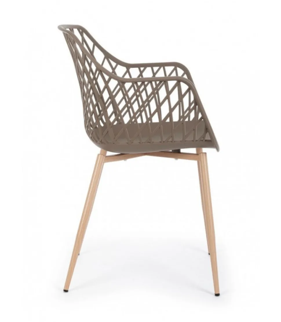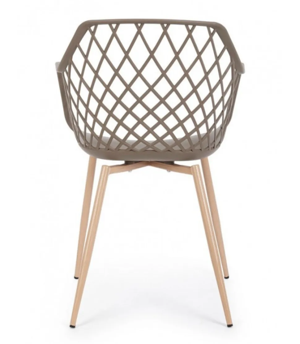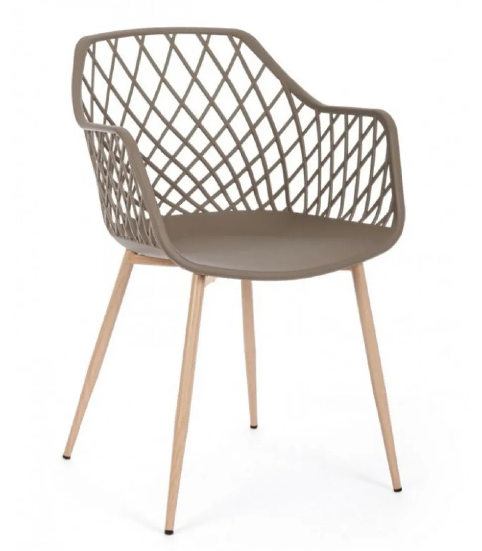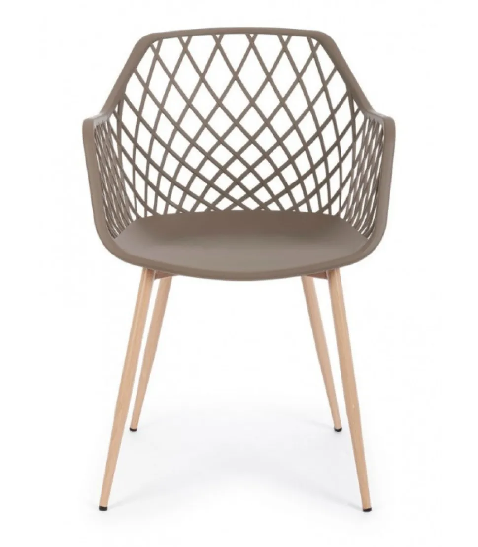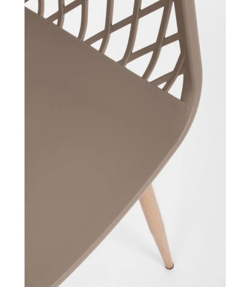 Sedia Optik Tortora Gambe In Acciaio Verniciate Effetto Legno Naturale. Seduta In Plastica (Pp). Gambe Da Assemblare. – Dimensioni In Cm. 58 (L.) 54 (P.) 85,5 H – 44 H1