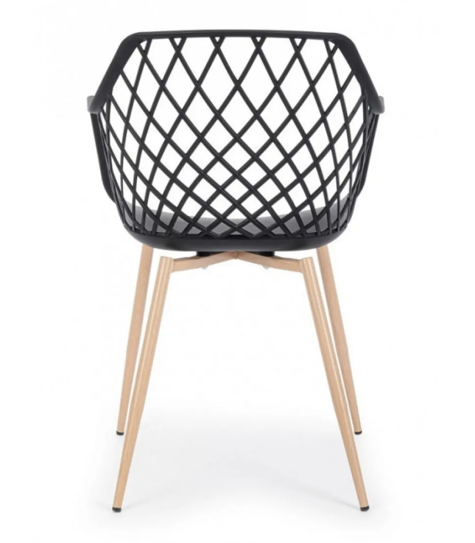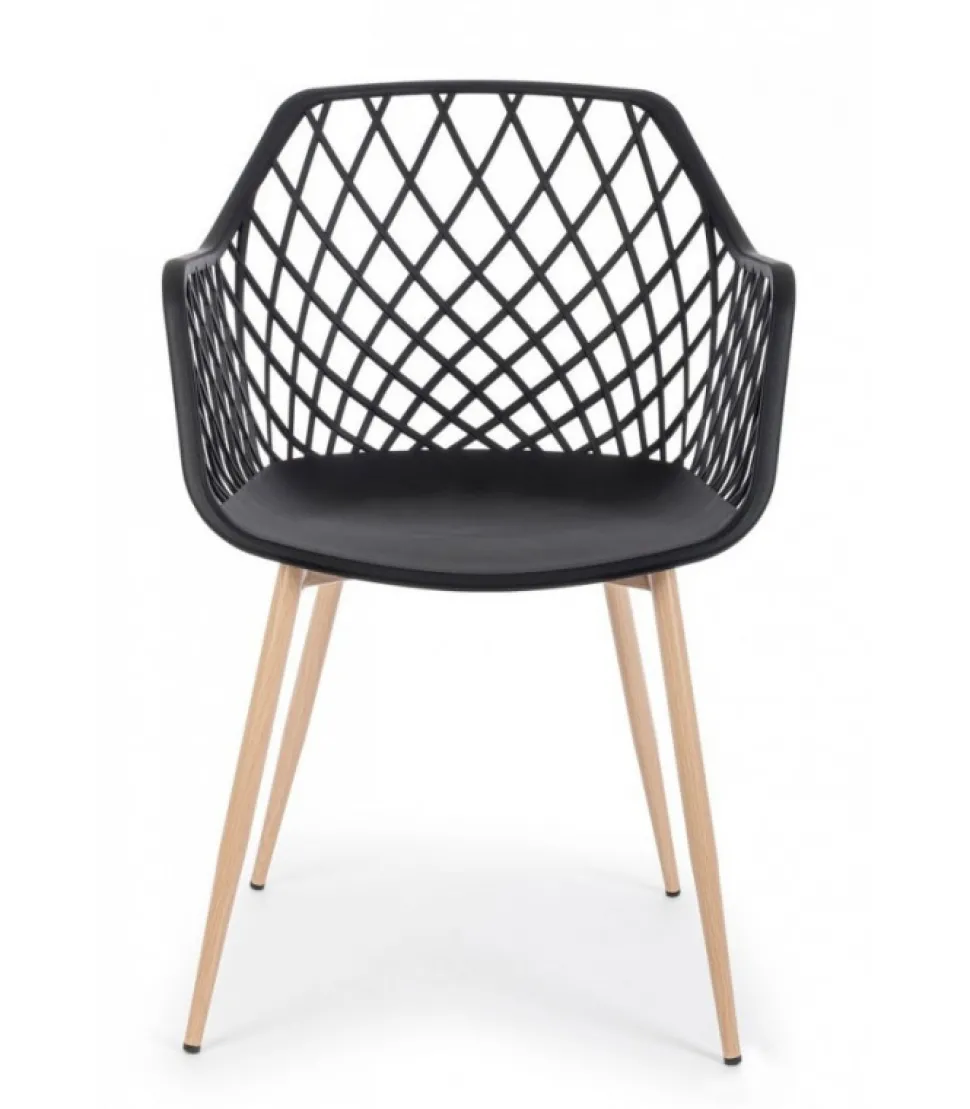 Sedia Optik Nero Gambe In Acciaio Verniciate Effetto Legno Naturale. Seduta In Plastica (Pp). Gambe Da Assemblare. – Dimensioni In Cm. 58 (L.) 54 (P.) 85,5 H – 44 H1