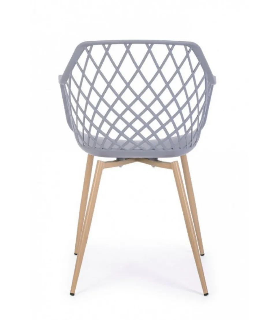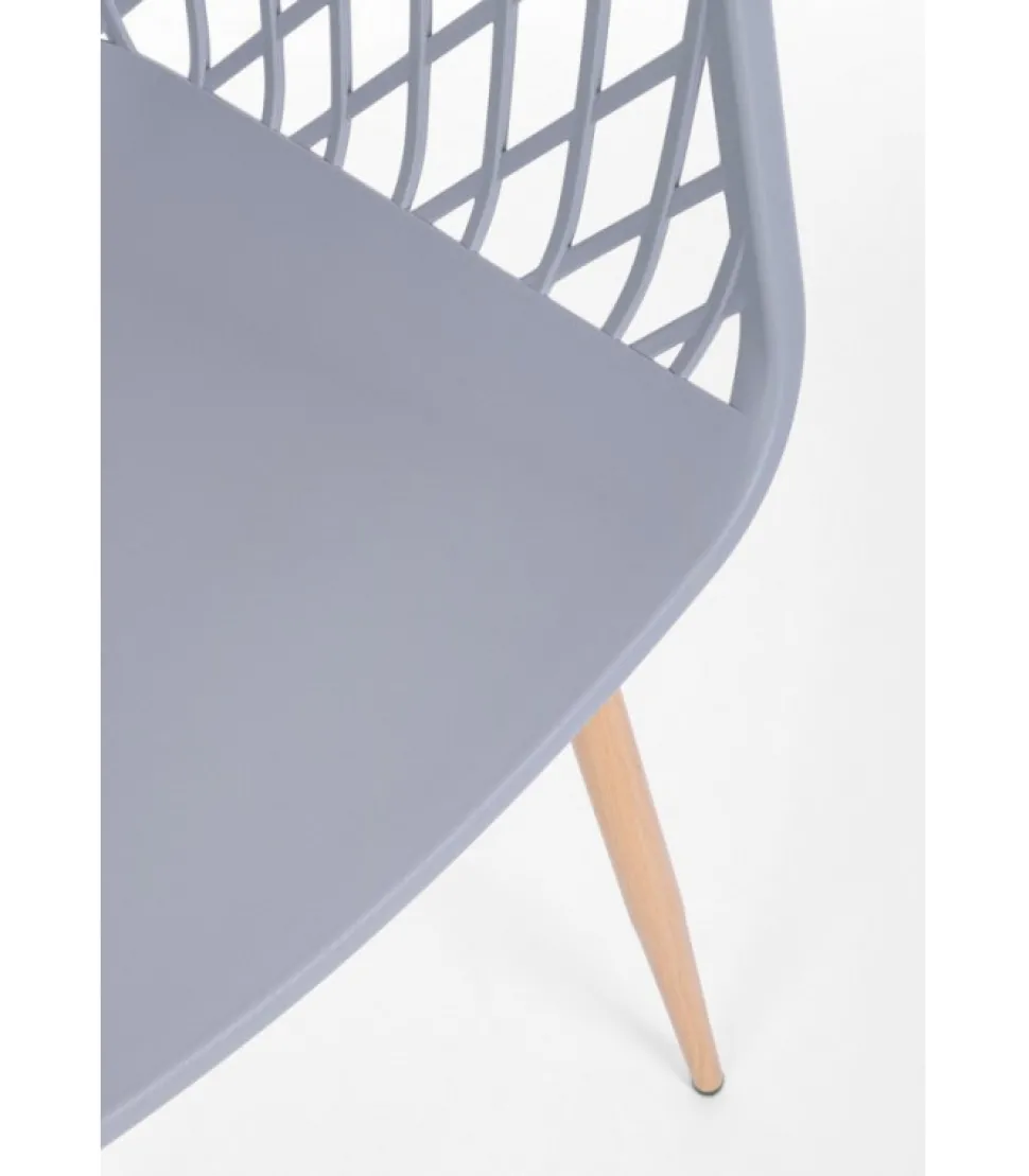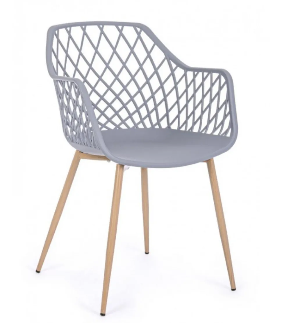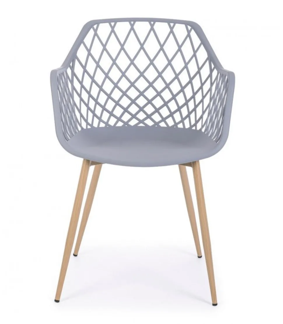 Sedia Optik Grigio Gambe In Acciaio Verniciate Effetto Legno Naturale. Seduta In Plastica (Pp). Gambe Da Assemblare. – Dimensioni In Cm. 58 (L.) 54 (P.) 85,5 ( H.) 44 ( H1)
