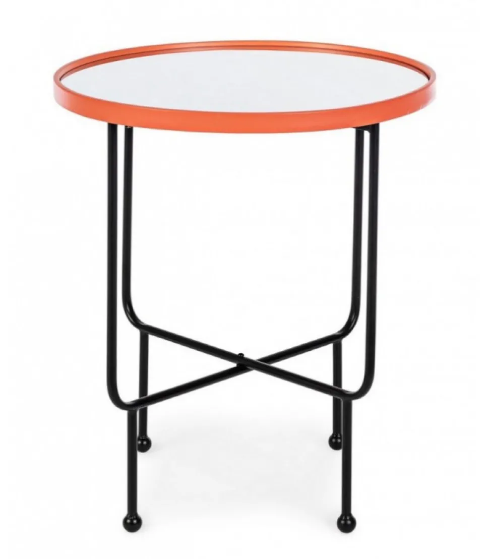 Tavolino Painter C-Specchio To Rosso D50 Acciaio Verniciato A Polvere Epossidica E Vetro. Da Assemblare – Dimensioni In Cm. 50 (L.) 50 (P.) 58.5 H