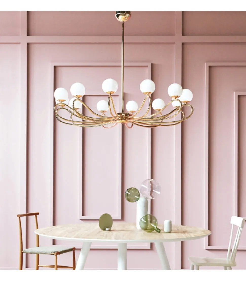 Lampadario Papillon 7207/12 Di Mm Design. Lampadario In Struttura In Metallo Con Diffusori In Vetro. Disponibile In Due Misure, Diametro 90 E 120 Cm. Sorgente Luminosa: Lampadina Con Attacco G9 Potenza Massima Lampadina: 12 X Max 5W Led Lampadina: Non Inclusa Dimensioni In Cm: D.90 H.63/113 Cm D.120 H.63/113 Cm
