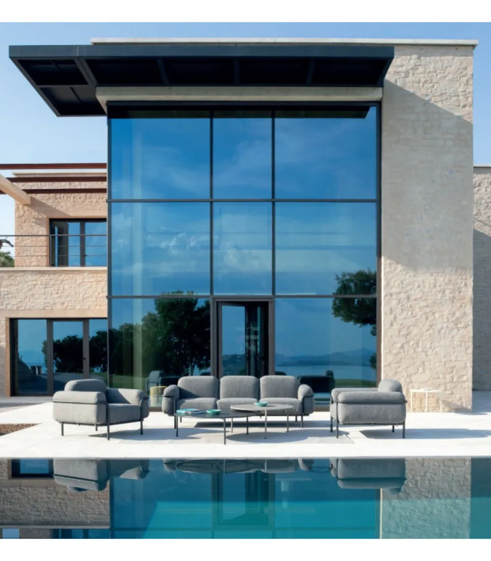 Linee Solide E Angoli Smussati Per Un Salotto Che, Come Il Nome Suggerisce, Avvolge E Accoglie Come In Un Abbraccio. Le Sedute Ampie E I Profili Morbidi, Sottolineati Da Una Struttura Geometrica Minimale, Disegnano Spazi All’Insegna Del Fascino Contemporaneo. La Serie Hug E Composta Da Divano A Tre Posti E Poltrona Con Comodi Braccioli. Ideale In Giardino O In Terrazzo, A Bordo Piscina O In Un Portico, Hug E La Collezione Perfetta Per Chi Punta Su Un Arredo Sobrio Ed Elegante Capace Di Regalare Un Accento Di Attualita E Freschezza A Qualsiasi Contesto.