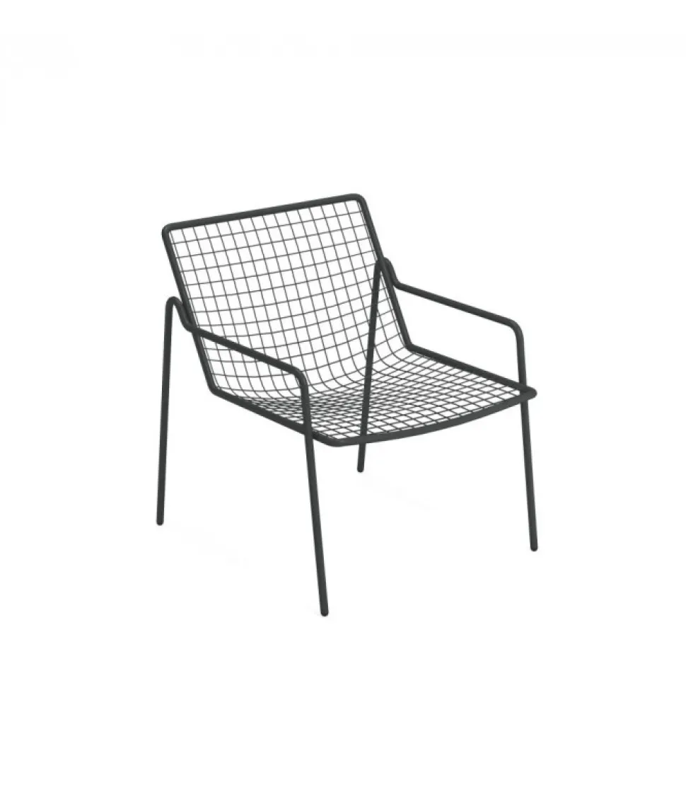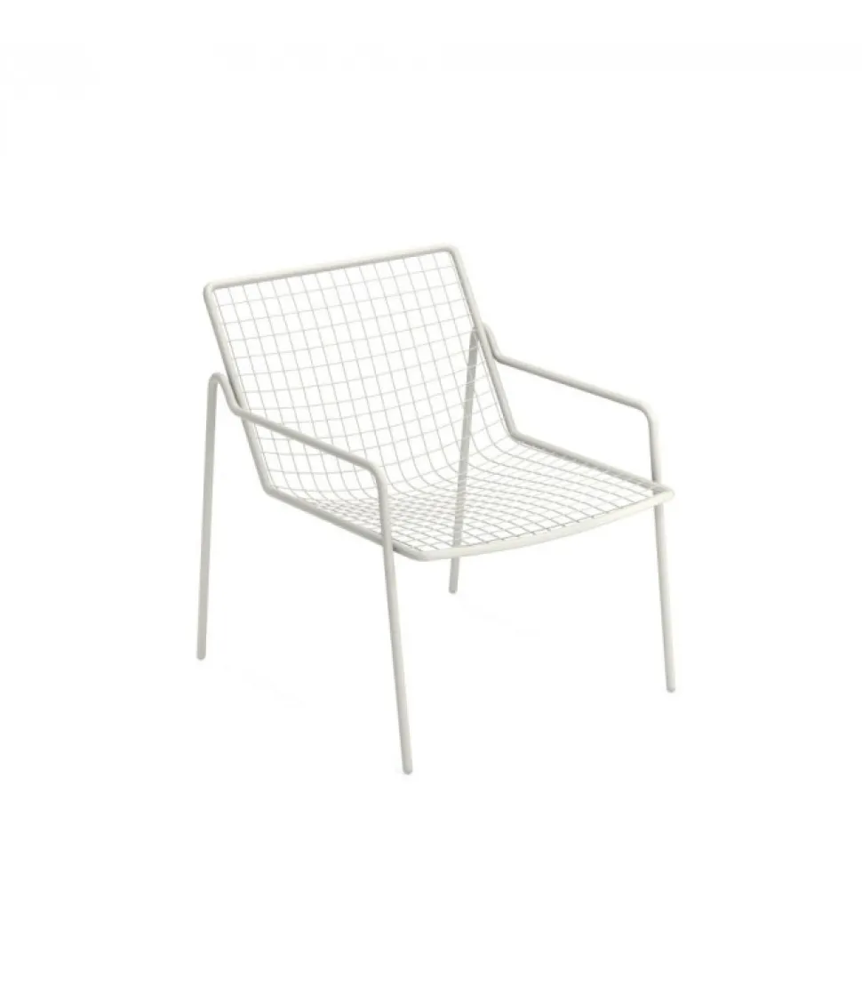 Rio R50 E Una Collezione Completa Di Sedute Composta Da Sedia E Poltroncina Dining, Poltrona Lounge Disponibile Anche Nella Versione Dondolo, Sgabello E Tavolo Basso. Rio R50 Ha Una Struttura In Tubo Di Acciaio Di Tipologia Asform, Acciaio Di Alta Qualita Con Elevate Capacita Meccaniche E Alta Resistenza Al Carico Del Peso. La Lavorazione Da Al Tubo Un Segno Fortemente Connotato, Una Lettera R, Che Si Individua Nella Zona Di Giunzione Tra Seduta E Schienale. Tutte Le Saldature Di Tipo Strutturale Sono Eseguite Con Tecnologia Mig Che Conferisce Una Maggiore Resistenza Agli Sforzi E Riduce Il Rischio Ruggine Mentre La Rete Di Tondini Di Acciaio E, Per Avere Una Maggior Precisione, Elettrosaldata Alla Struttura. Come Tutti I Prodotti Emu In Acciaio, E Previsto Un Pretrattamento Di Cataforesi E Successivamente Un Trattamento Di Verniciatura Con Polvere Termoindurente, Che Conferisce Al Prodotto Uno Strato Di Vernice Con Spessore Omogeneo Con Un Alto Grado Di Aderenza E Resistenza. La Presenza Dei Sottopiedi In Nylon Supporta La Facilita Di Spostamento E Di Protezione Delle Estremita Del Prodotto.