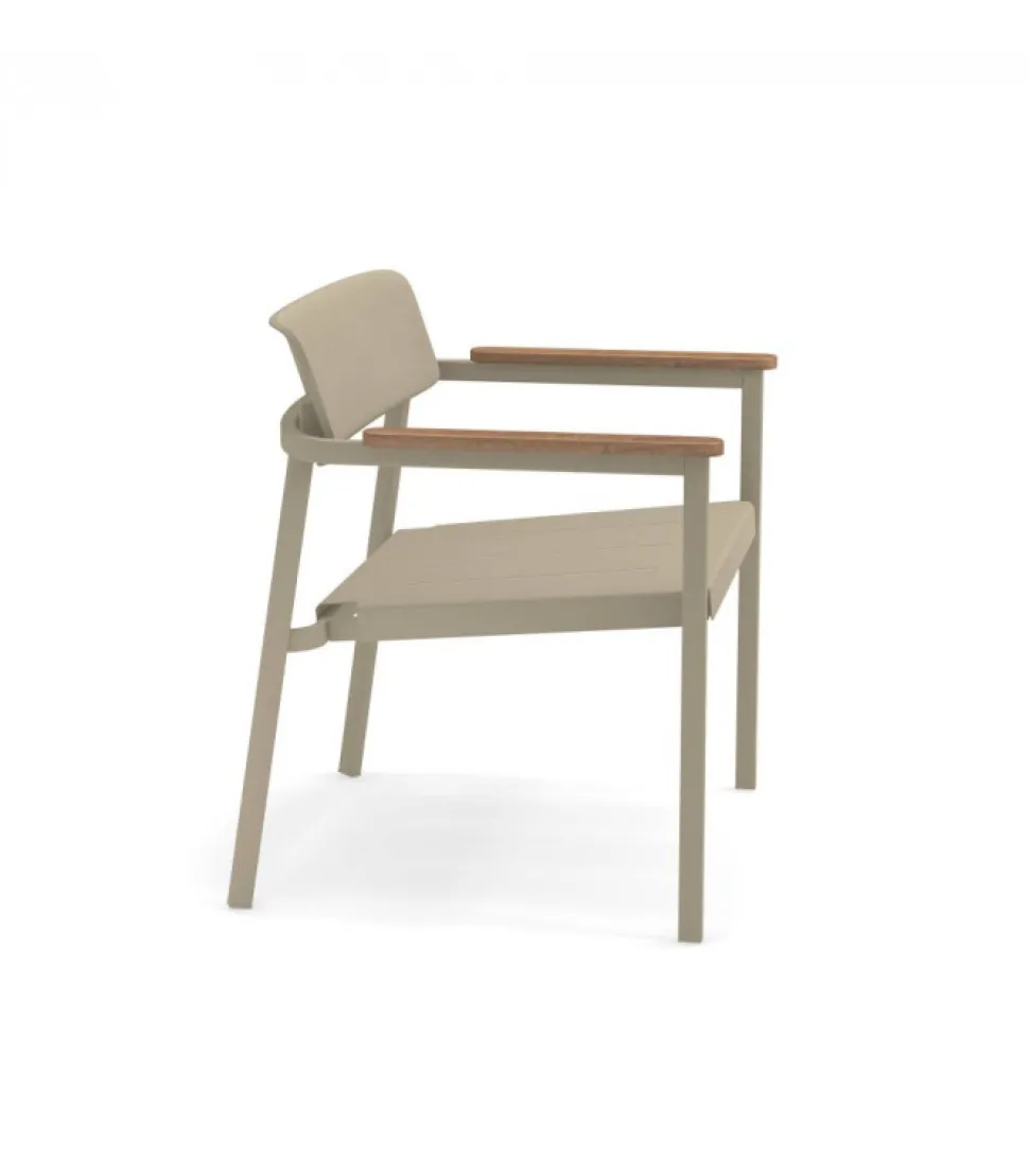 Poltrona Con Struttura In Alluminio Verniciato, La Seduta E Disponibile In Alluminio Verniciato O In Teak (I Braccioli Sono In Teak). E Disponibile In Quattro Colori Diversi Ed E Accessoriabile Di Cuscino. E Impilabile (Per Un Massimo Di 4 Poltrone Impilate) Ed E Venduta In Stock Da 2 Pezzi.
