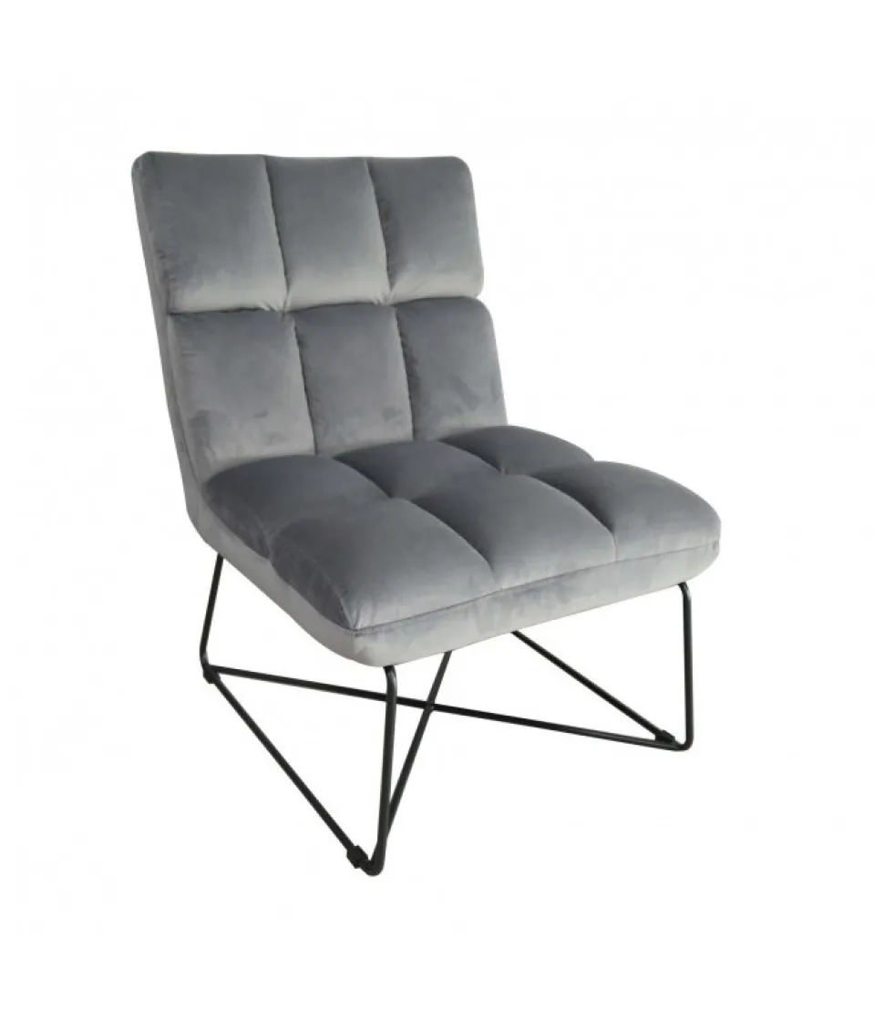 Poltrona Lizzie Velluto Grigiostruttura E Gambe In Acciaio Verniciato A Polvere Epossidica- Imbottitura In Schiuma Poliuretanica Densita’ 24 Kg/M3- Rivestimento In Velluto (100% Poliestere)- Gambe Da Assemblare.Dimensioni:61(L) – 82(P) – 87(H) – 47(H. Seduta)
