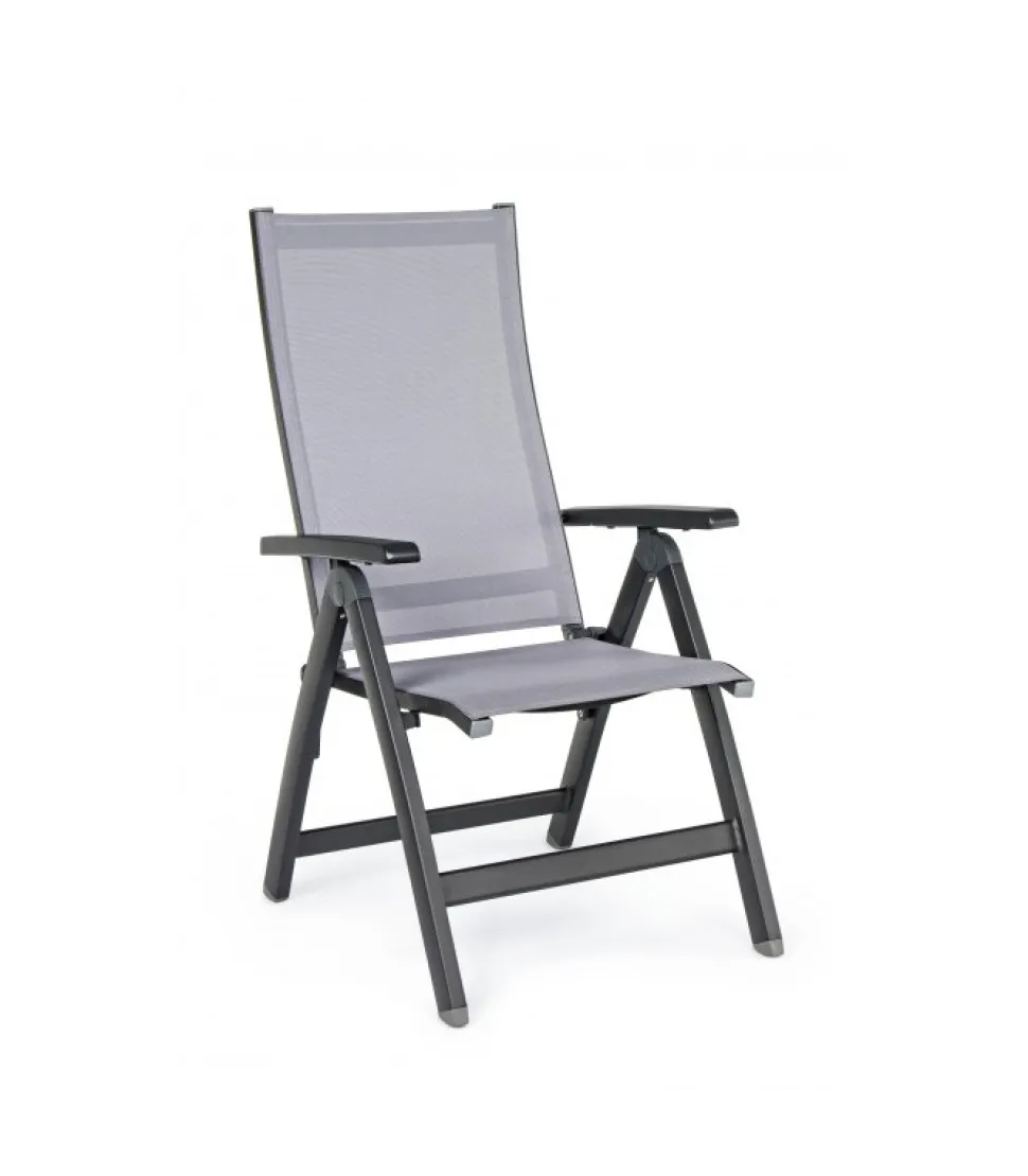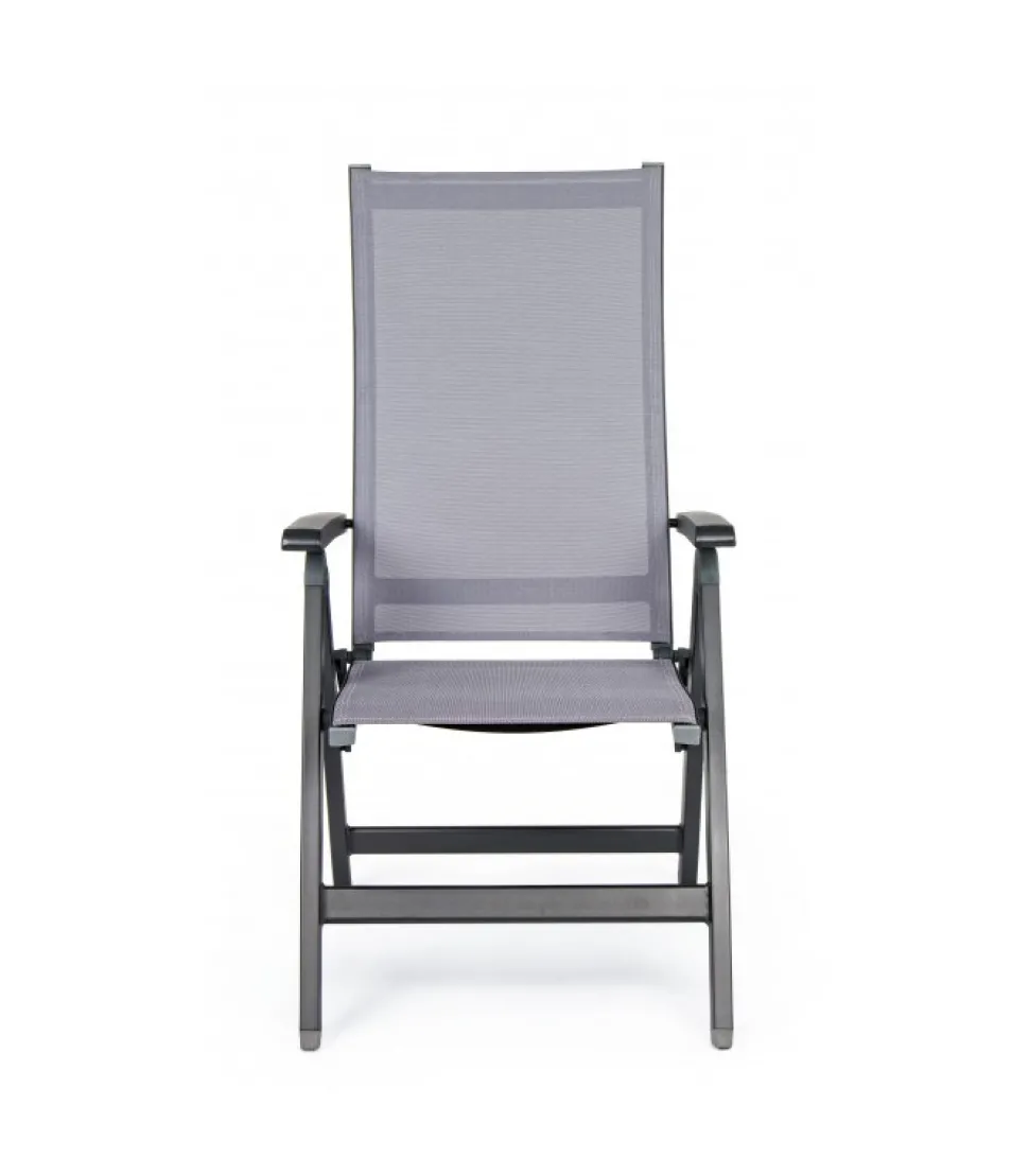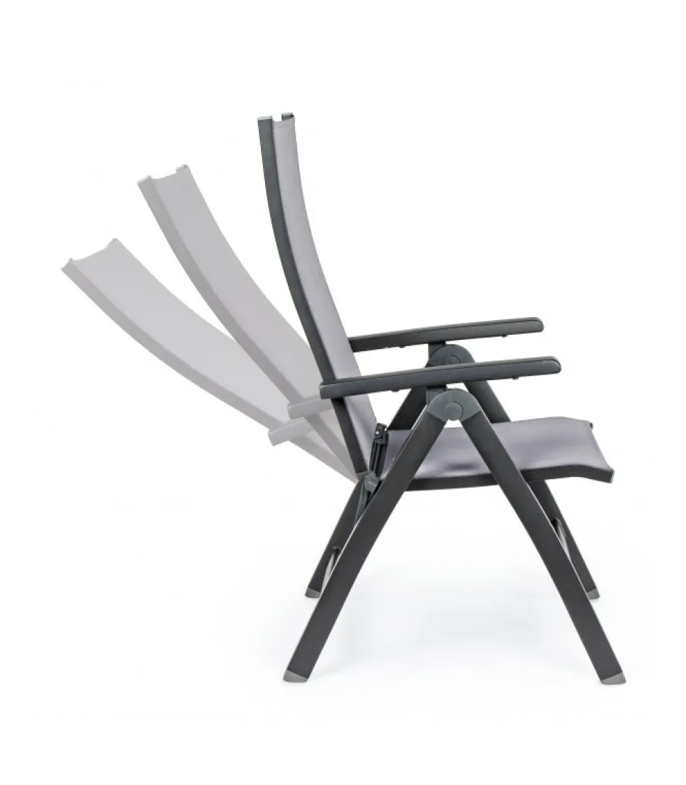 Poltrona Reclinabile Cruise Antrac.Gk52 – Struttura In Alluminio, Verniciato A Polvere (Poliestere). Seduta E Schienale Rivestiti In Textilene Phifer 1X1. Schienale Reclinabile (5 Posizioni). Pieghevole – Dimensioni In Cm. 59 (L.) 71 (P.) 113 ( H.) 44 ( H1) – 66 ( H2)